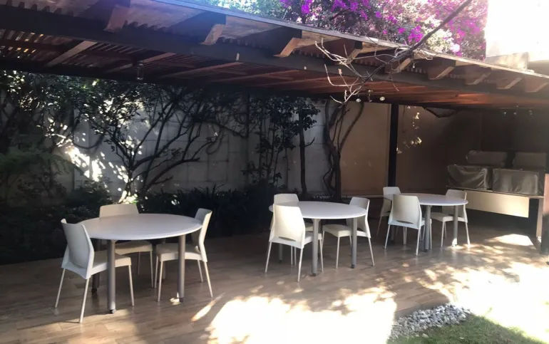 GRAN JARDIN DE 300 M2 APROX CON UNA TERRAZA TECHADA CON ASADORES, GYM Y 6 ESTACIONAMIENTOS TECHADOS-