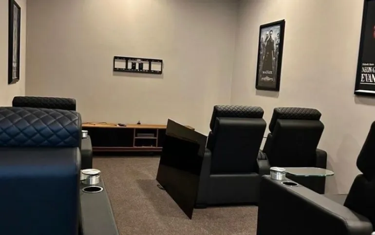 • Sala de cine privada con sillones reclinables, portavasos y mesitas de cristal