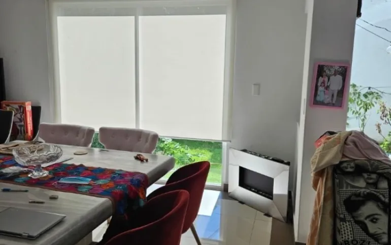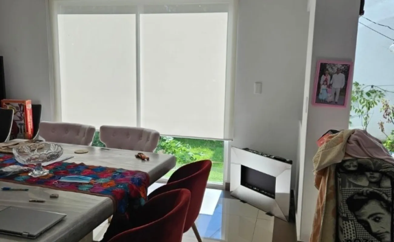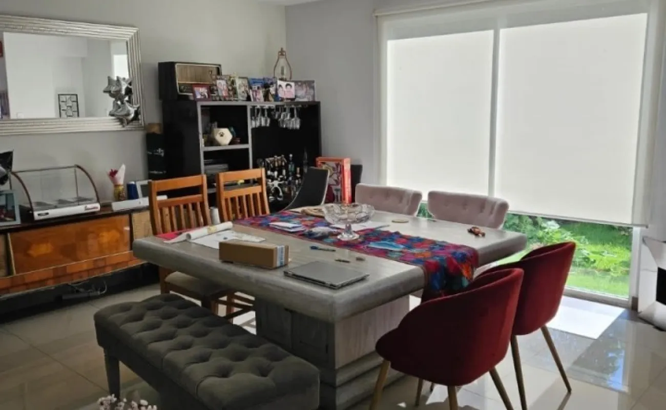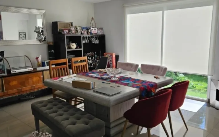 Es un fraccionamiento de 10 casas, antigüedad de 9 años, 135 metros de terreno, 240 de construcción en dos plantas, garage para 2 autos, jardín, terraza, tres recámaras, la principal con jacuzzi, 3 baños y medio, cuarto de lavado con baño, despacho, mantenimiento de 2000 al mes +52 55 8032 6822