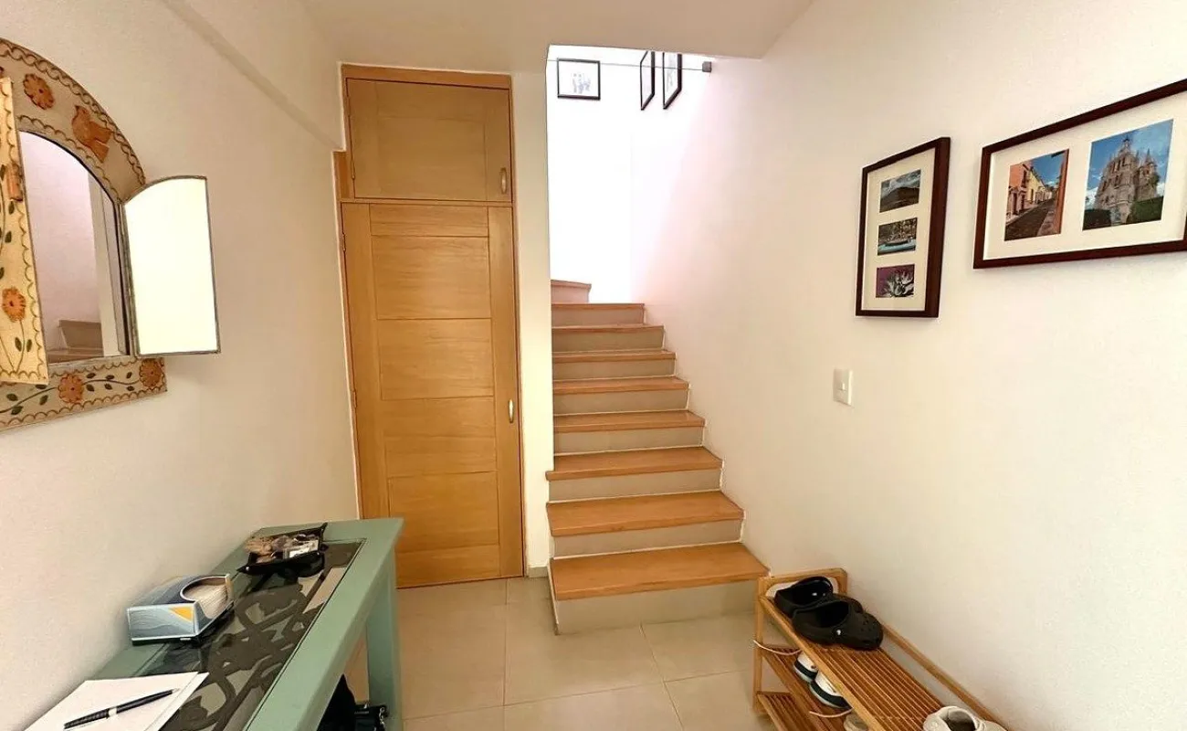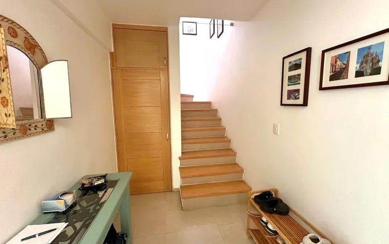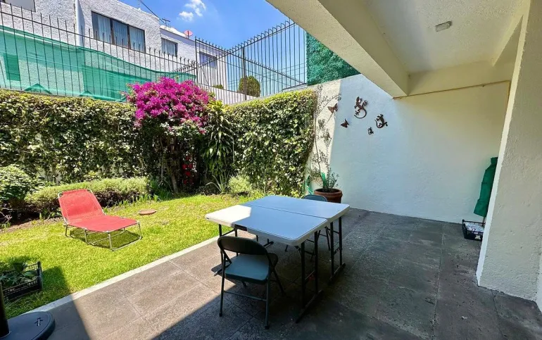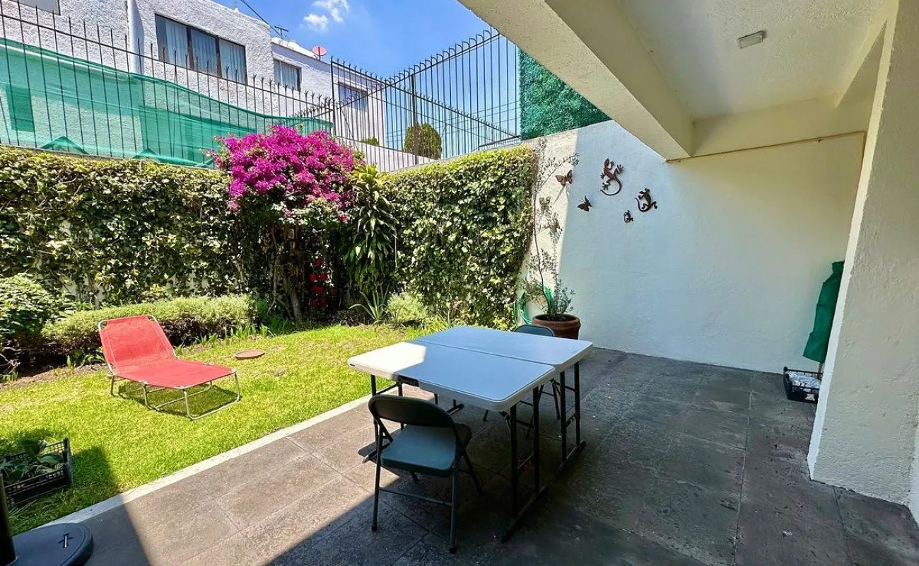Patio, jardín y terraza, medio baño, clóset de visitas, clóset para varias cosas.