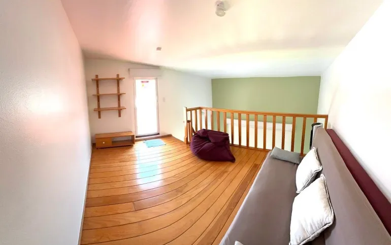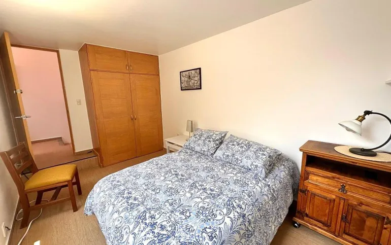 En primer piso, primera recámara, o puede ser estudio con clóset.