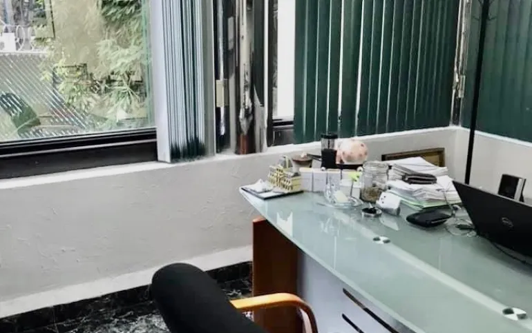 Consta de una casa de 1,200m2 de construcción ya adaptada para oficinas con varios privados, salas de junta,cubículos, baños, bodegas, cocina y comedor para empleados.