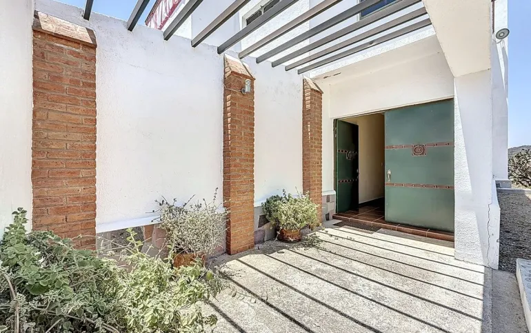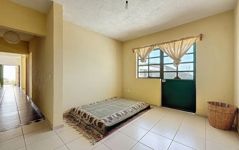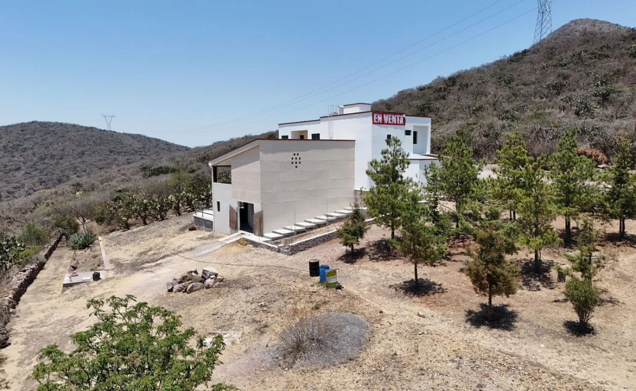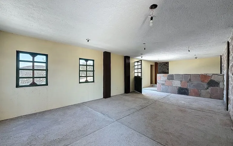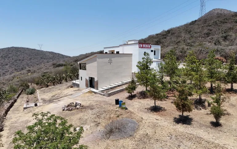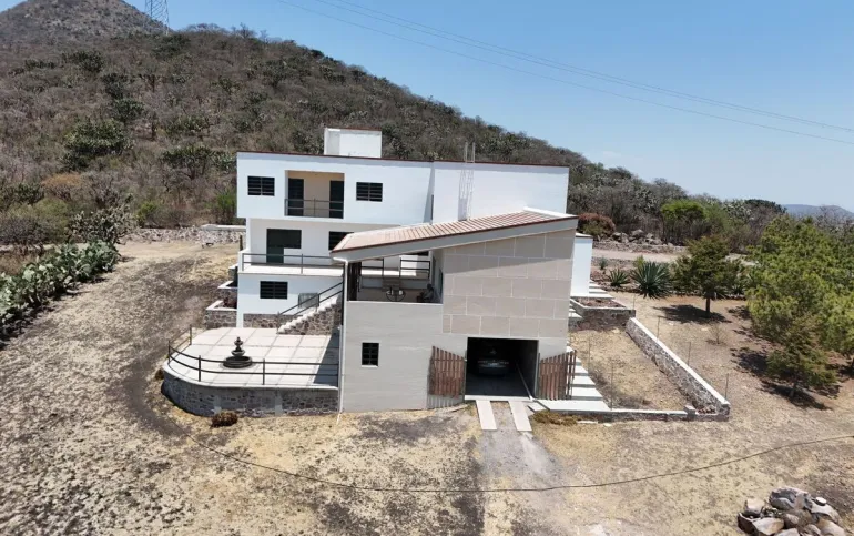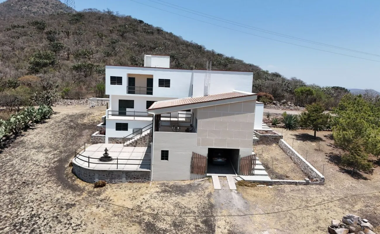 La casa tiene 550 m2 de construcción, 4 recámaras, 3½ baños, despacho, garaje techado para 1 auomóvil y un terreno de 9,000 m2 con árboles frutales, nopales y cactus de la región.