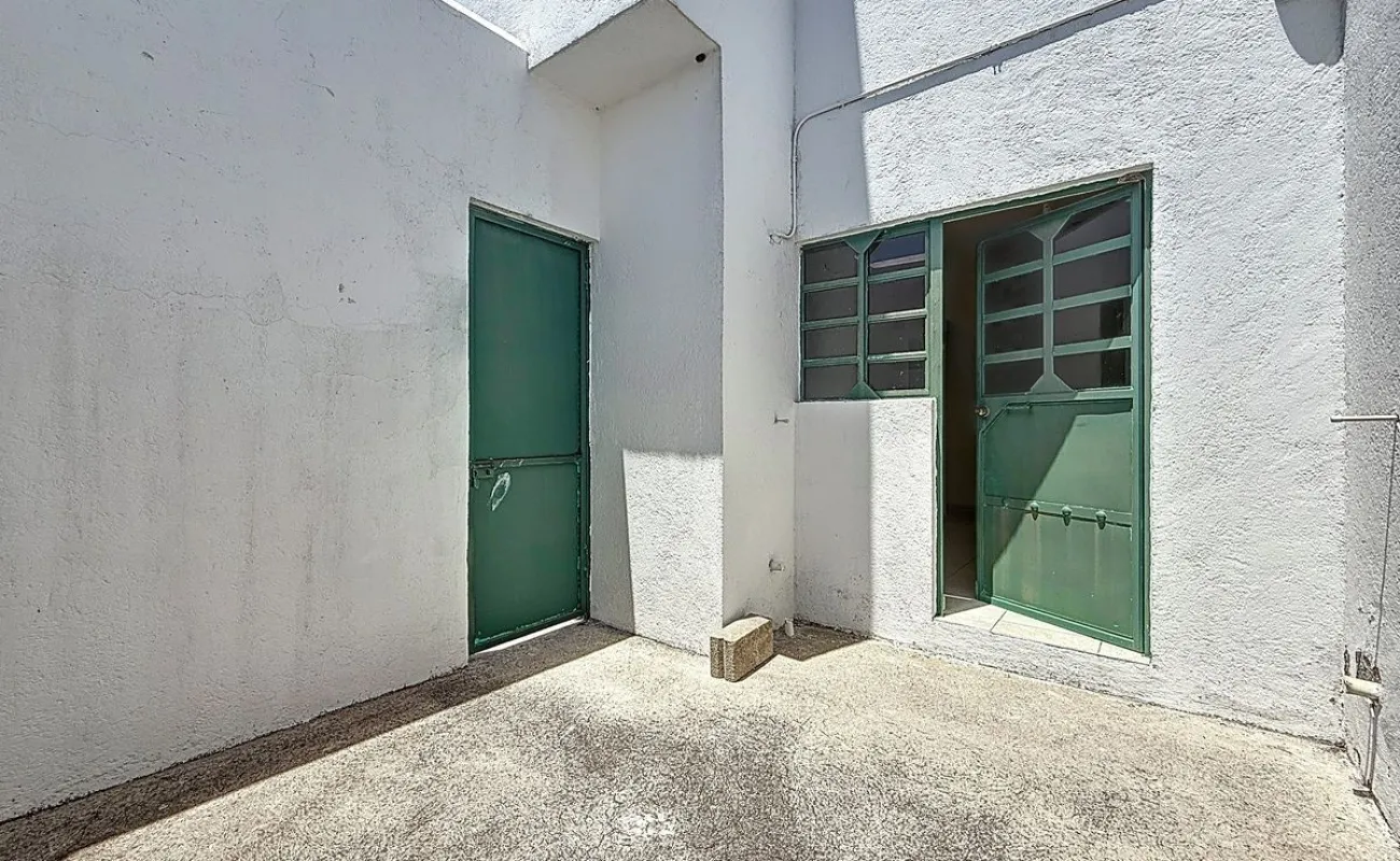 Puerta de acceso a la casa, recibidor, despacho, medio baño para visitas y para el despacho, recámara de invitados con su baño completo. Bajando un desnivel está la estancia sala-comedor con puerta de acceso a la terraza, la cocina, el área de lavado y el patio de servicio.