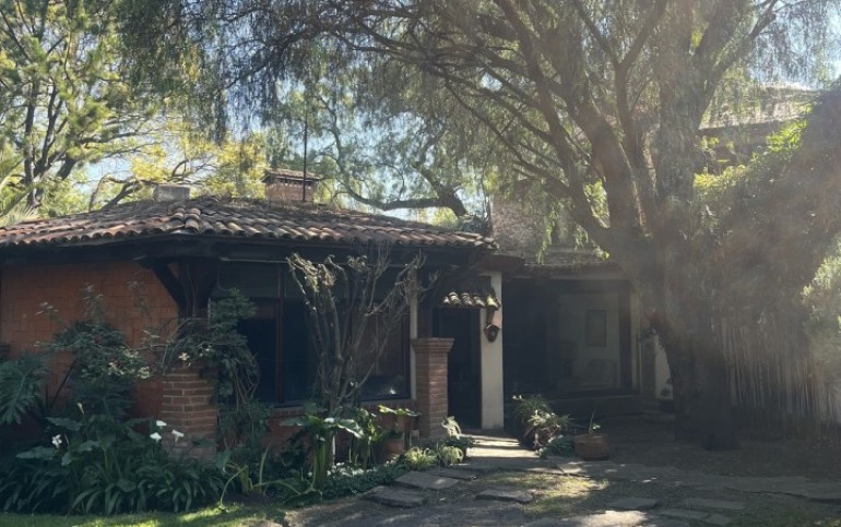 Hermosa y espaciosa casa lista para remodelar en una linda y segura privada estilo colonial con jardín privado y una pequeña cabaña totalmente independiente de la casa principal de una recámara, baño completo, pequeña cocina y chimenea.