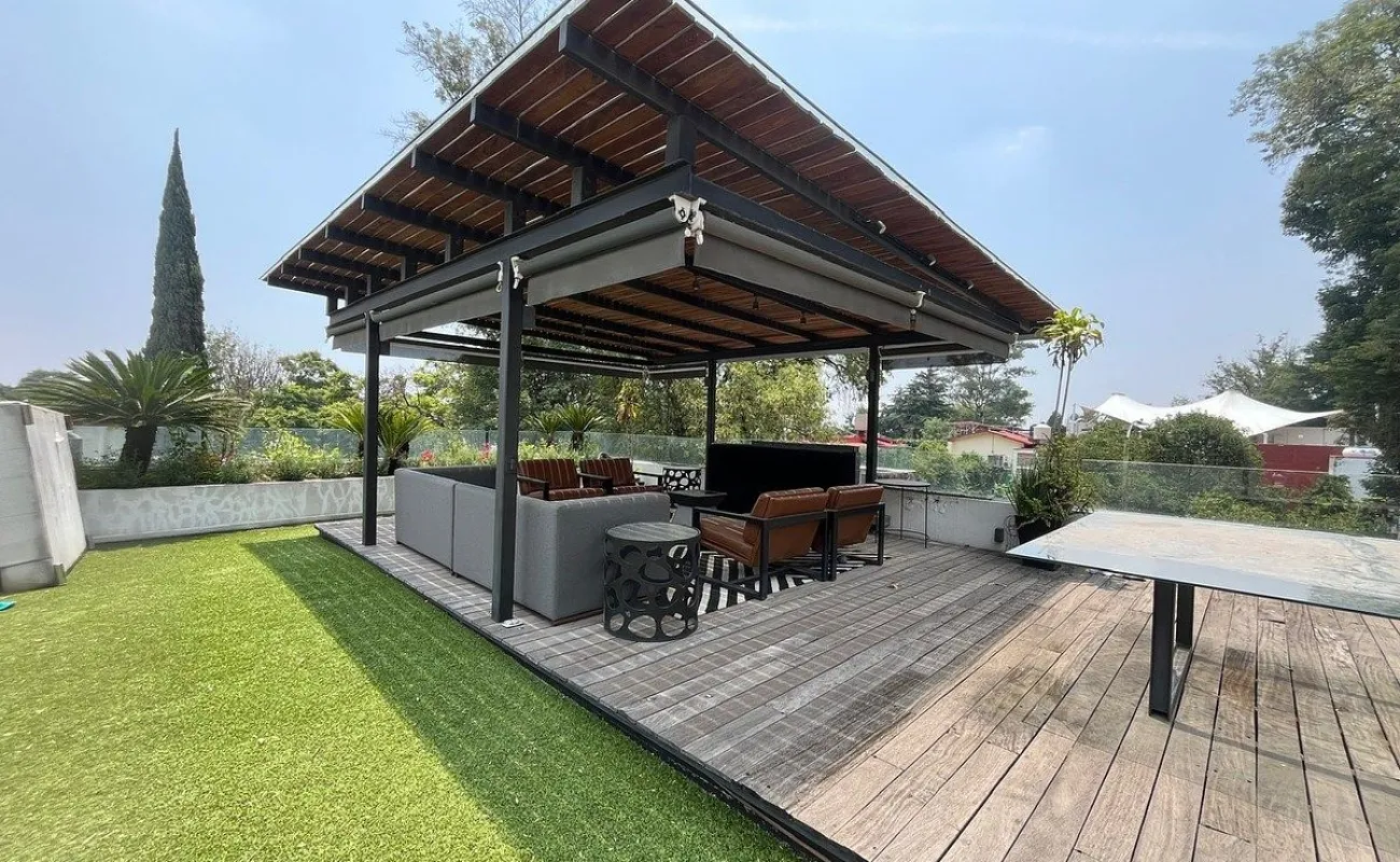 Residencia con espacios amplios y luminosos, diseñada para convivir con comodidad. Sala, comedor y una gran cocina de inspiración contemporánea, 1/2 baño de visitas, family room, terraza y un acogedor jardín. Cuenta con 3 recámaras con baño, incluyendo una recámara principal con vestidor. Ademas de un roof con pergola y asador y 1/2 baño. Área de lavandería y patio, 2 cuartos de servicio con baño, bodega y 3 estacionamientos. Cuenta con calefaccion
