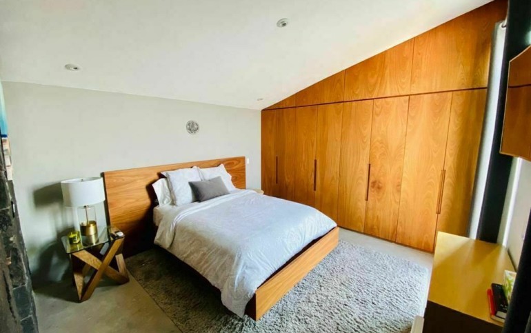 Consta de 300m2 de construcción y 480m2 de terreno, 4 recámaras, cada una con baño y clóset, 3 recámaras en planta alta y una en planta baja, sala, comedor, cocina, sala de TV, dos terrazas, alberca, jardines con riego automático.