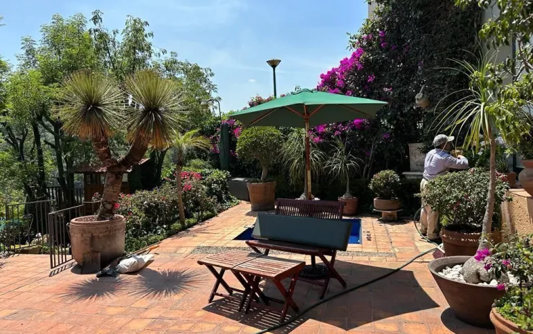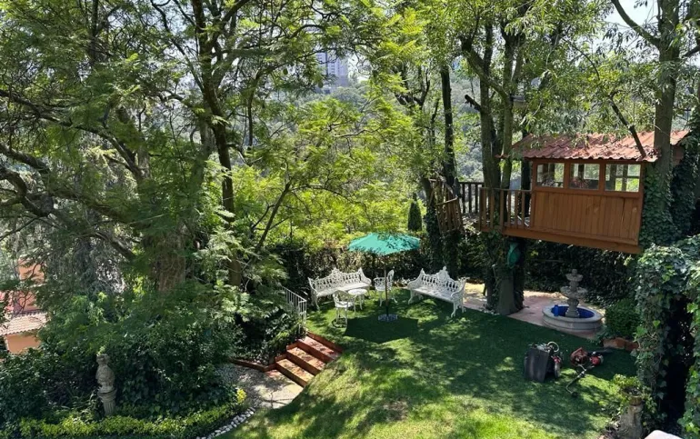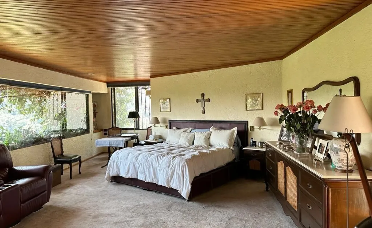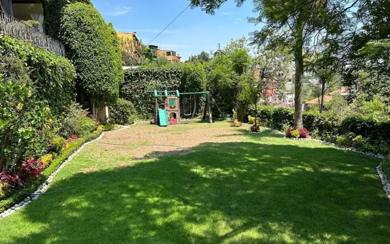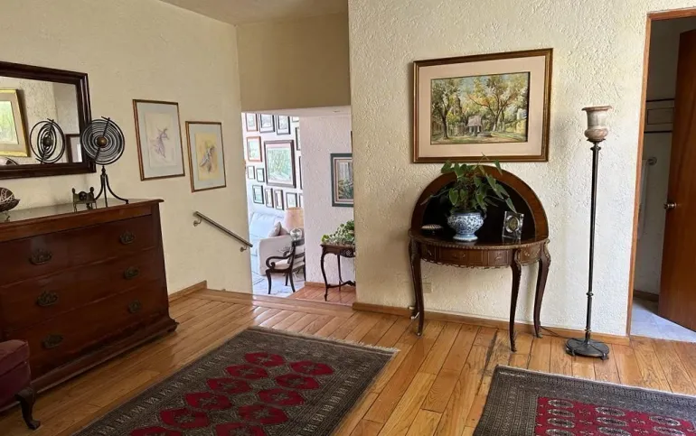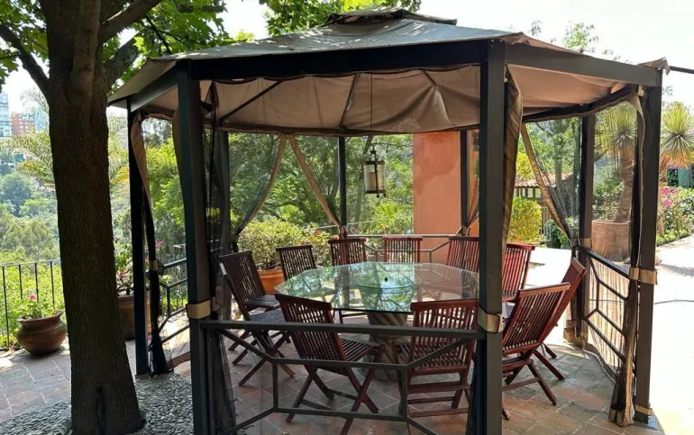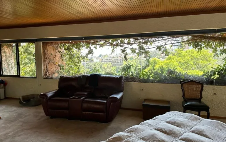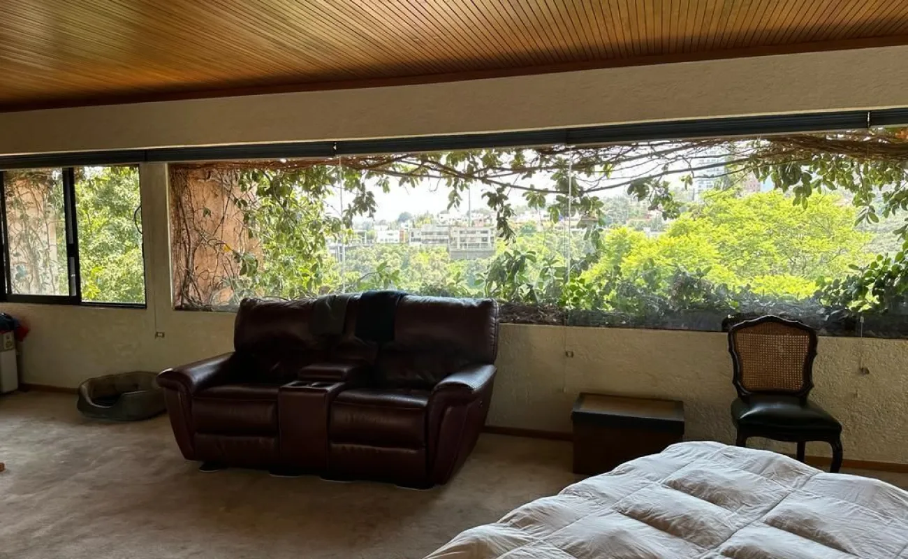 Linda vista, techos de doble altura, muy iluminada, jardín muy amplio, terraza con una pérgola, con área social muy amplia y gran vista, family y antecomedor dan a la terraza. Consta de 3 recámaras amplias con su baño cada una, la principal con vestidor muy grande, las otras dos recámaras con closets, medio baño de visitas y un medio baño en el jardín, cuarto de tv,
