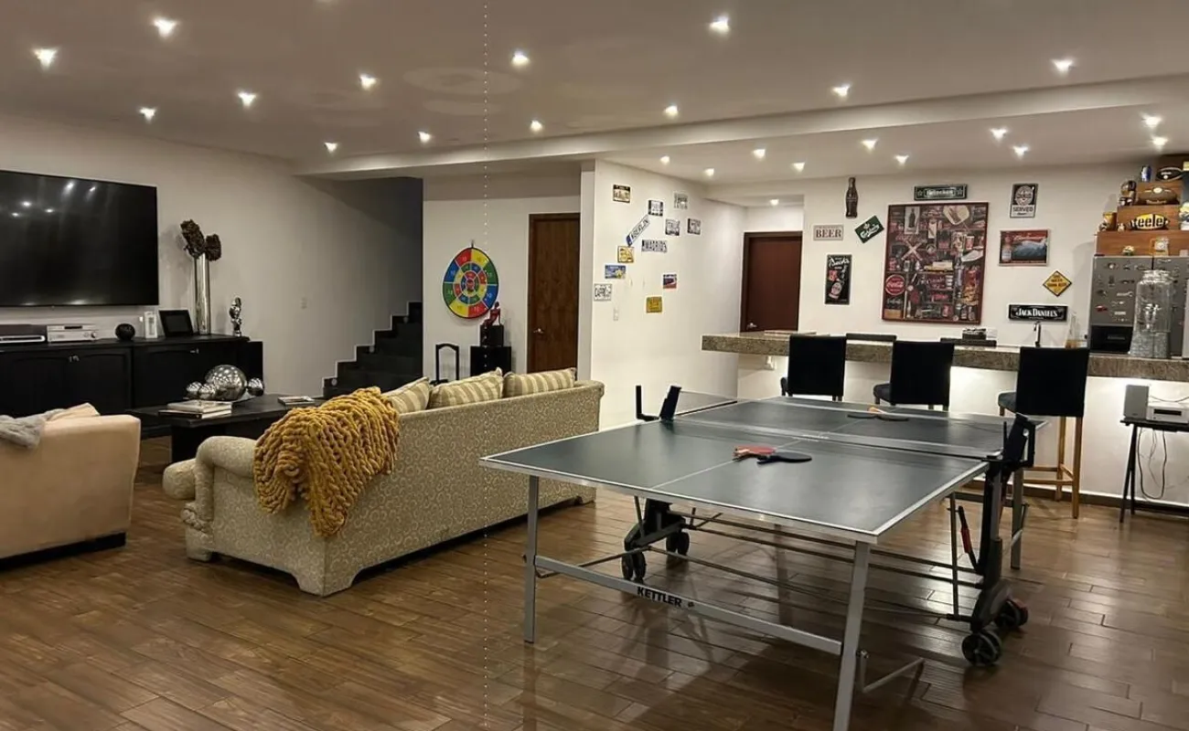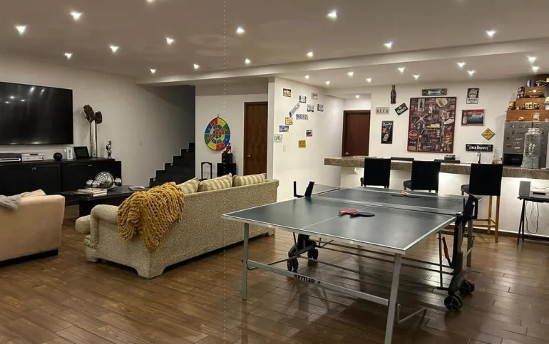 Sótano :6 lugares de estacionamiento , amplio salón de juegos con barra de granito