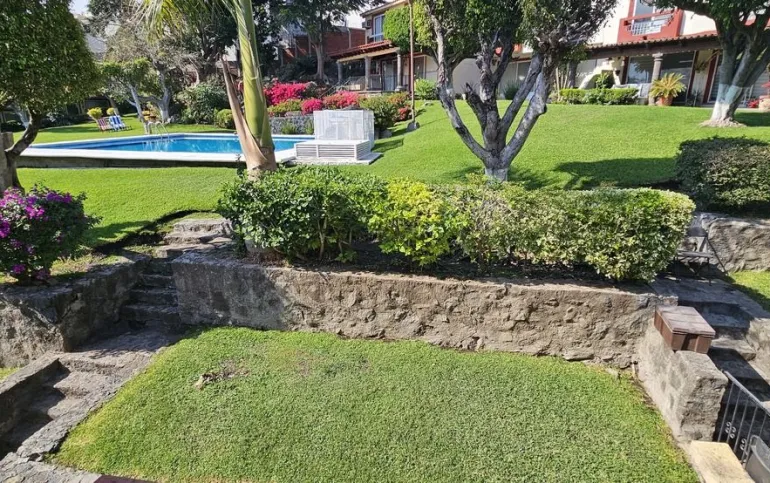 Casa de 3 recámaras, sala de TV, 2 1/2 baños, terraza, garaje para 2 autos, en condominio de solo 16 casas, con amplios jardines, árboles frutales, 2 albercas (una semiolímpica con caldera), palapa y espectacular cancha de tenis. 4,200 m2 de área común, vigilancia 24 horas, en condominio de solo 16 casas con amplio jardín, alberca y cancha de tenis, árboles frutales y vigilancia 24 horas, ubicado en un fraccionamiento residencial con doble vigilancia.