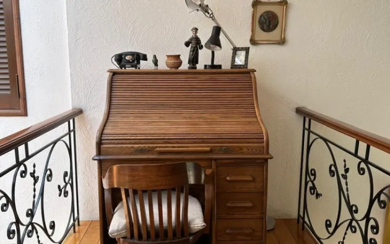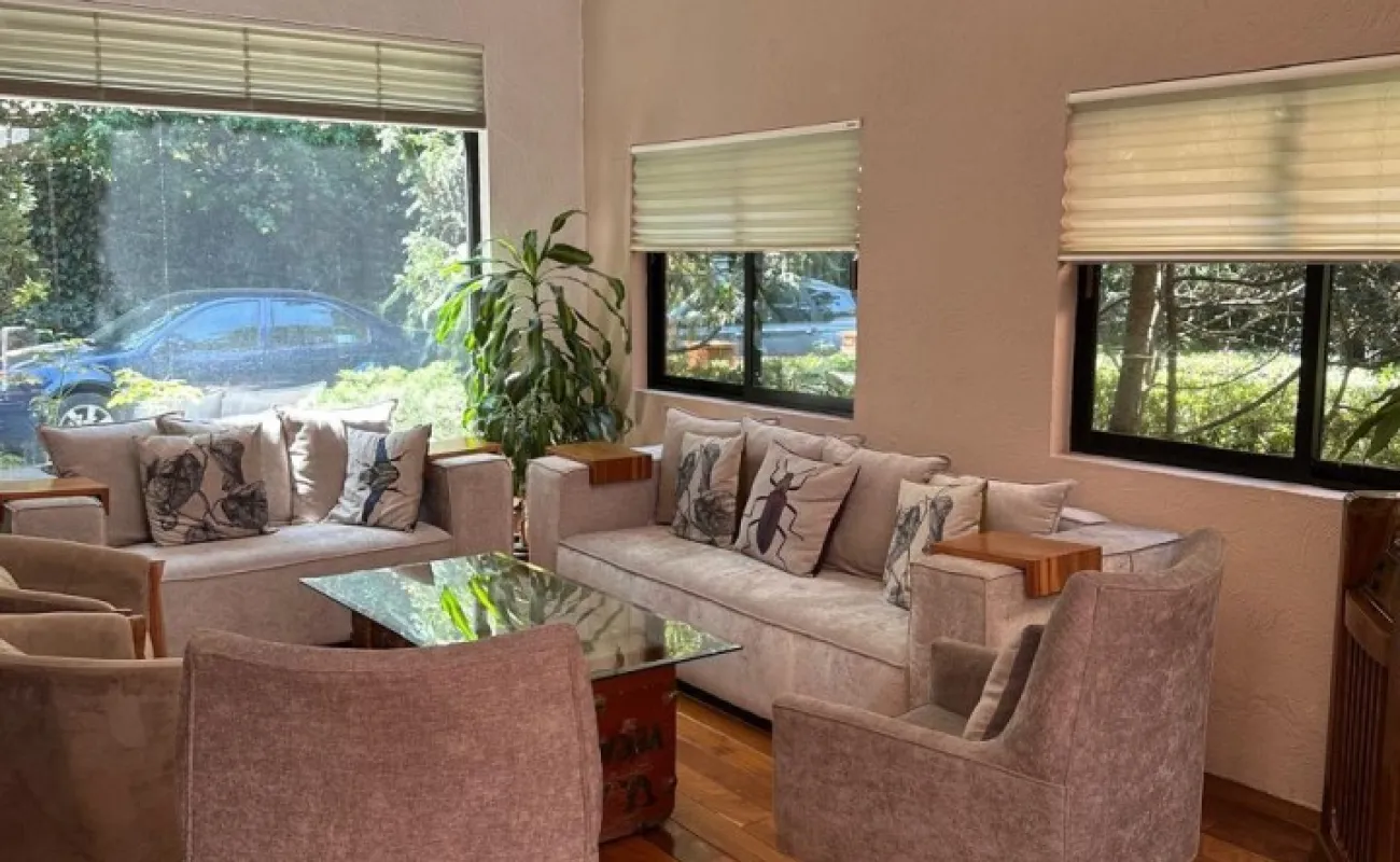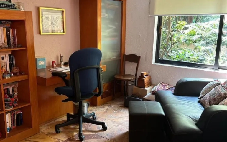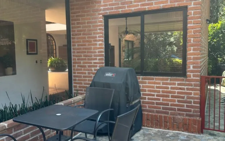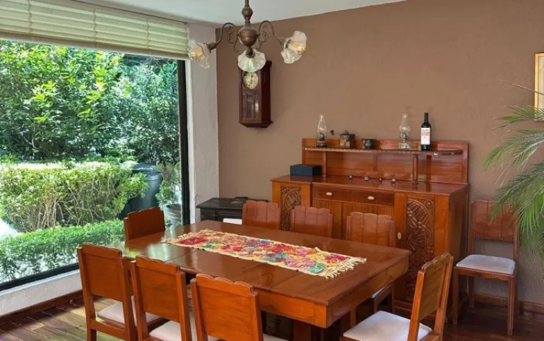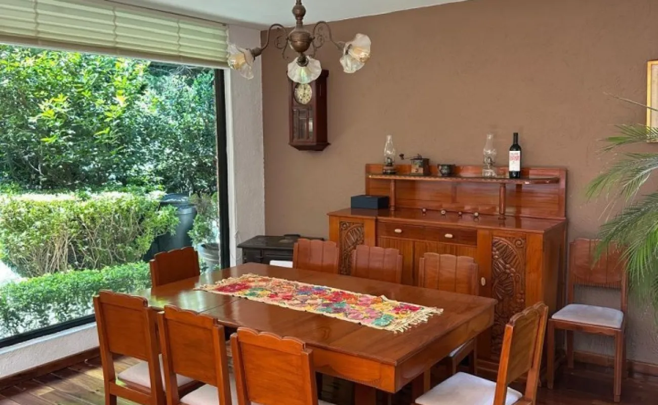La propiedad cuenta con una sala con chimenea funcional, un comedor elegante, un cuarto de televisión para el entretenimiento, un estudio para el trabajo o la lectura, y un cuarto de servicio con baño completo.