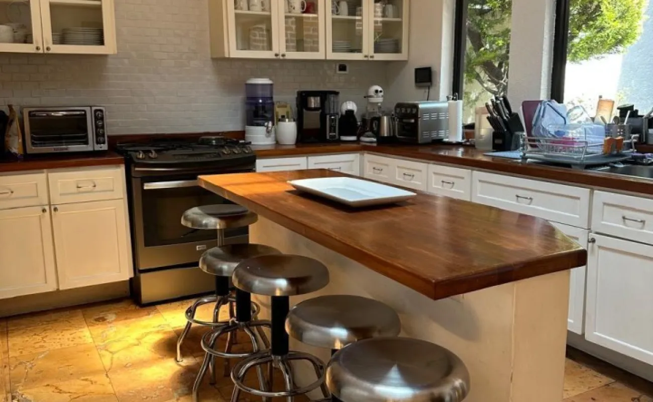 La cocina, el cuarto de televisión y el hall de doble altura son el corazón de la casa, diseñados para el entretenimiento y la convivencia familiar.