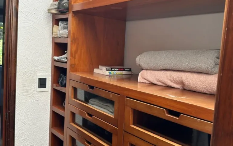 La recámara principal cuenta con pisos de madera de ingenieria, el resto de la propiedad, cuenta con acabados de madera de alta calidad.