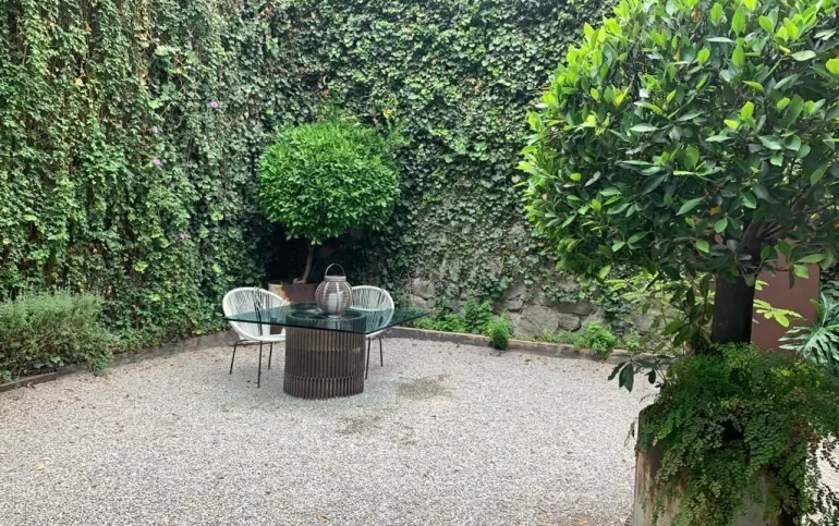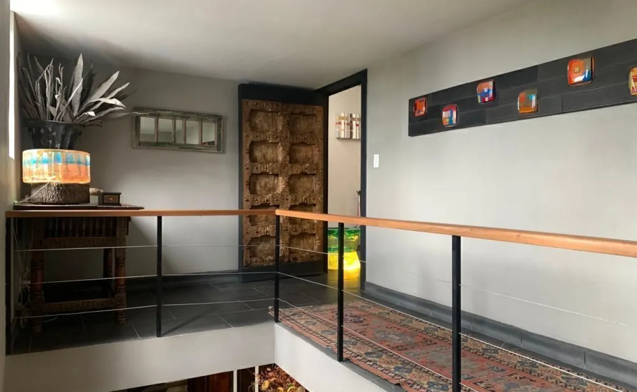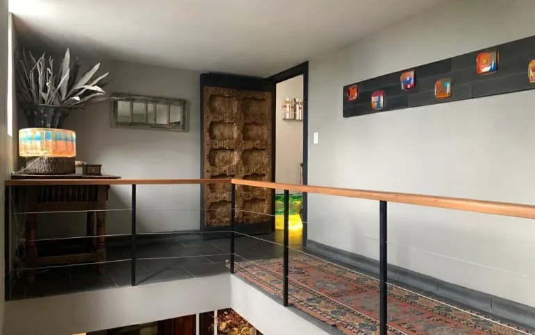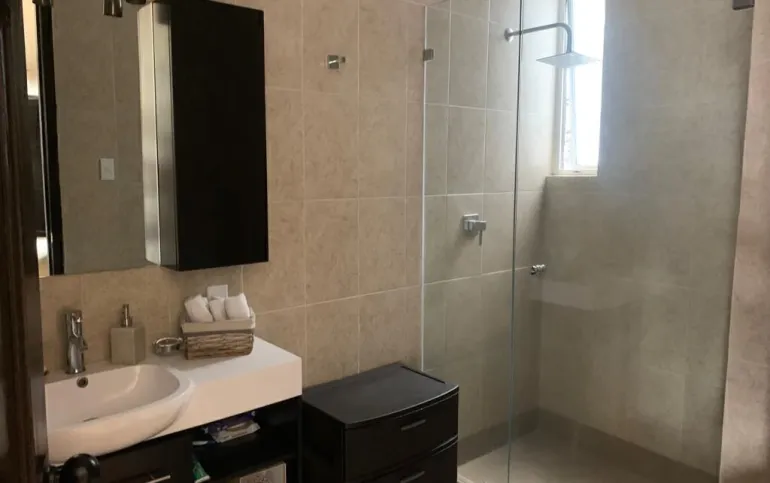 El nivel de la entrada se encuentra un cuarto de choferes y un espacio al aire libre y otra parte techado que actualmente se usa para bodega pero se podría hacer una terraza con pérgola.