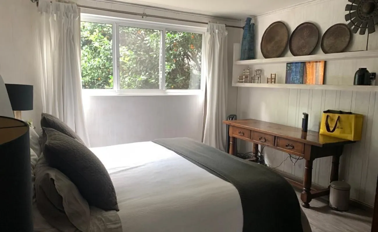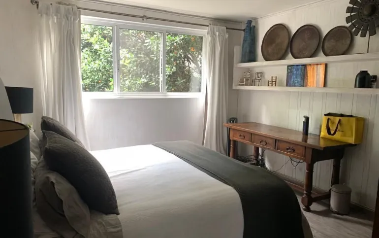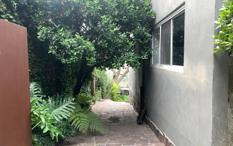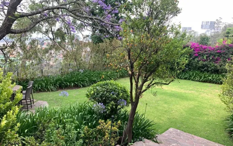 La casa cuenta con paneles solares, cisterna, riego automatizado.