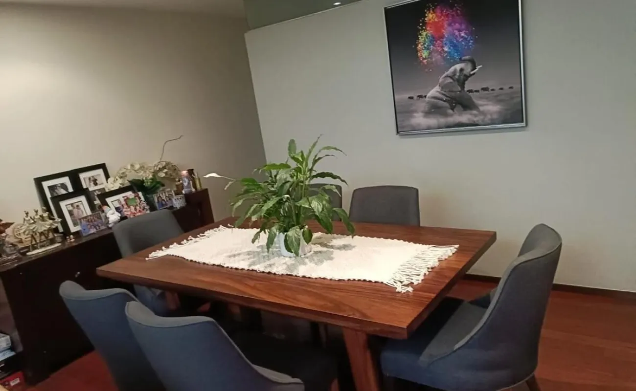 En el 1er piso tiene gran estancia con balcón para sala y comedor , cocina integral cerrada y medio baño de visitas. Medio piso arriba, se encuentran las 2 recámaras secundarias con closet que comparten el baño completo.