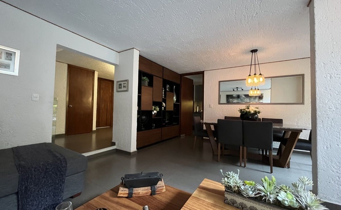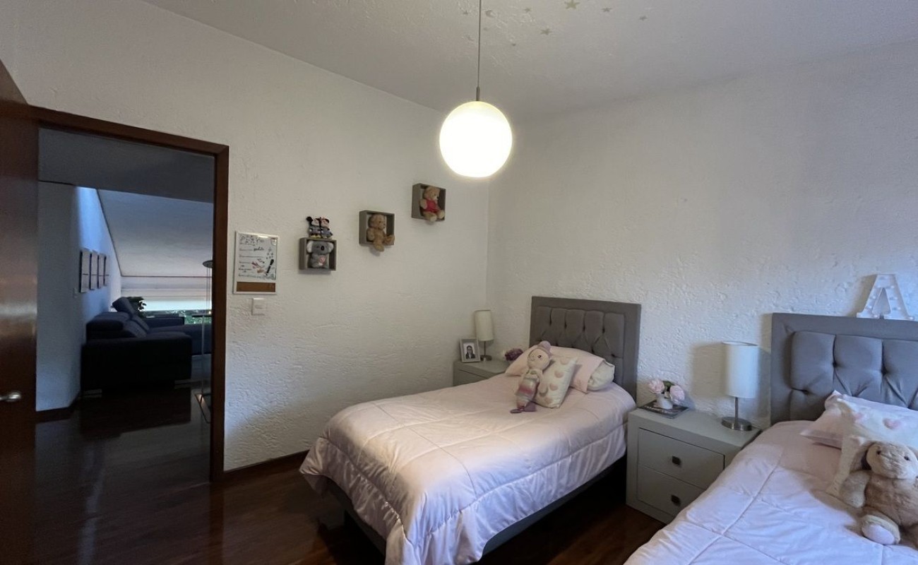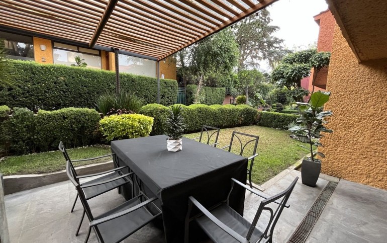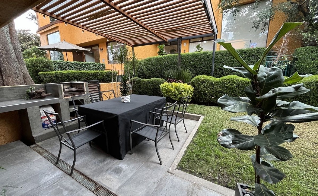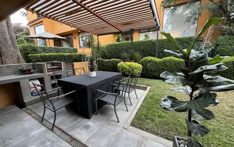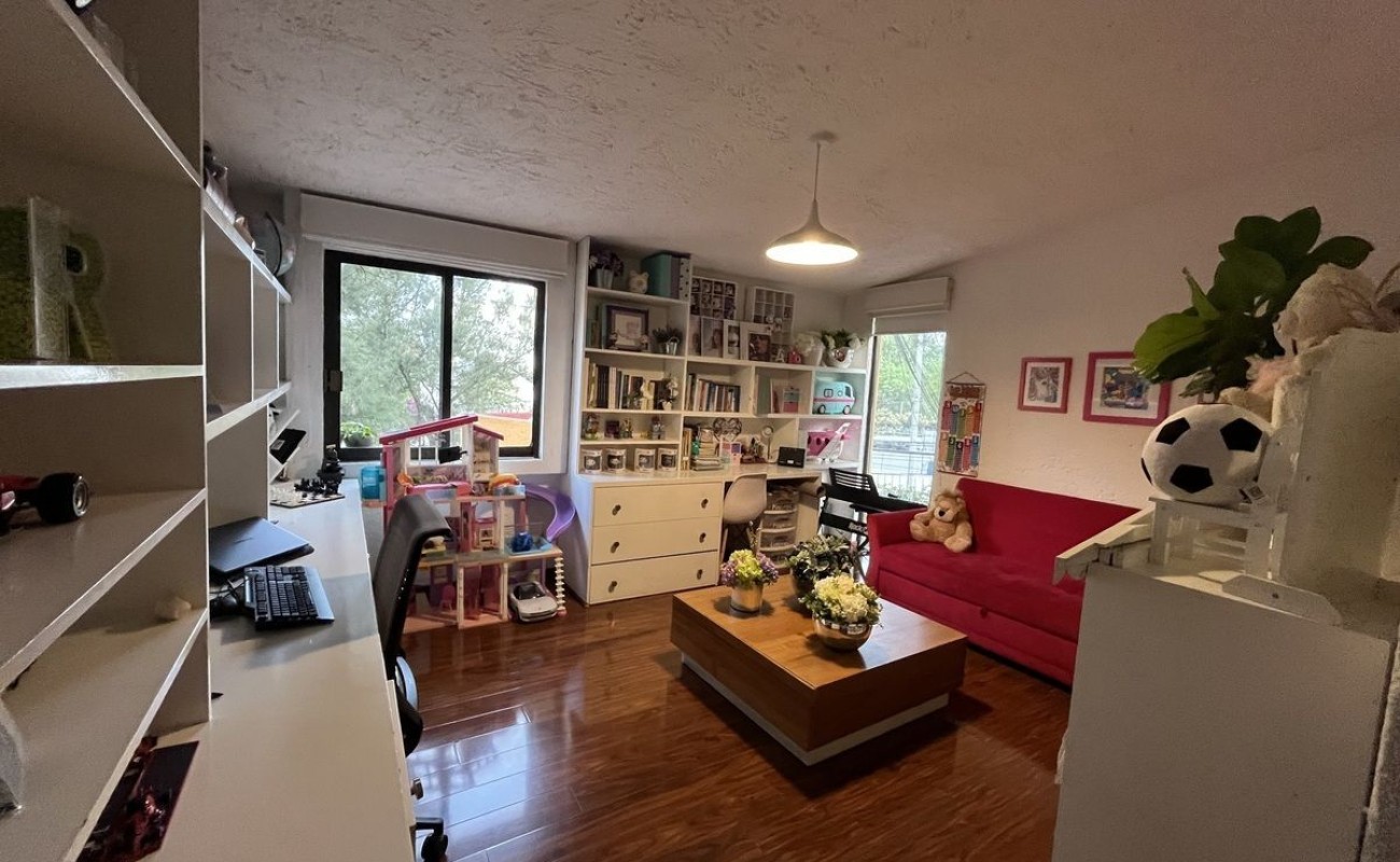 La casa fue remodelada en 2016, tiene 2 estacionamientos techados y bodega. Tiene entrando un lindo recibidor, medio baño de visitas, linda sala con doble altura y chimenea, comedor, cocina integral de granito con barra y gran alacena, patio de lavado, cuarto de servicio con baño. Sala y comedor dan a la terraza con pérgola y asador y a un lindo jardín privado. Tiene otra bodega abajo de las escaleras y subiendo un amplio y hermoso family room, las dos recámaras secundarias son muy amplias e iluminadas con gran closet de piso a techo y comparten baño completo. La recámara principal también es muy amplia con doble closet de piso a techo y baño completo adentro. $2500 de mantto