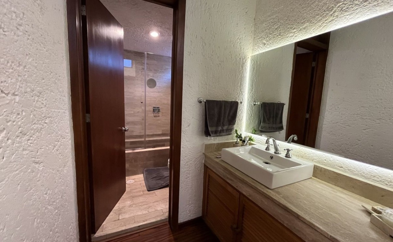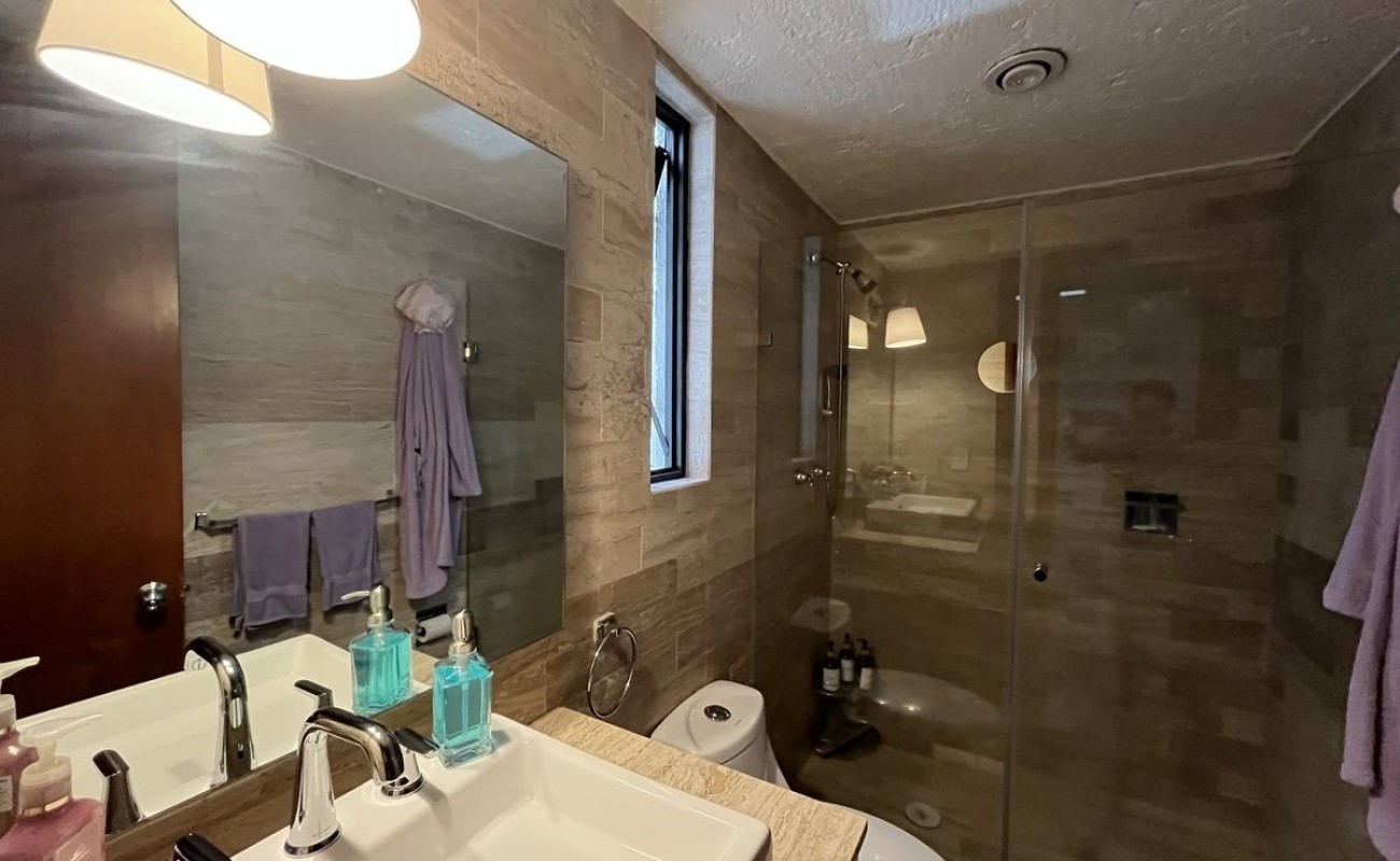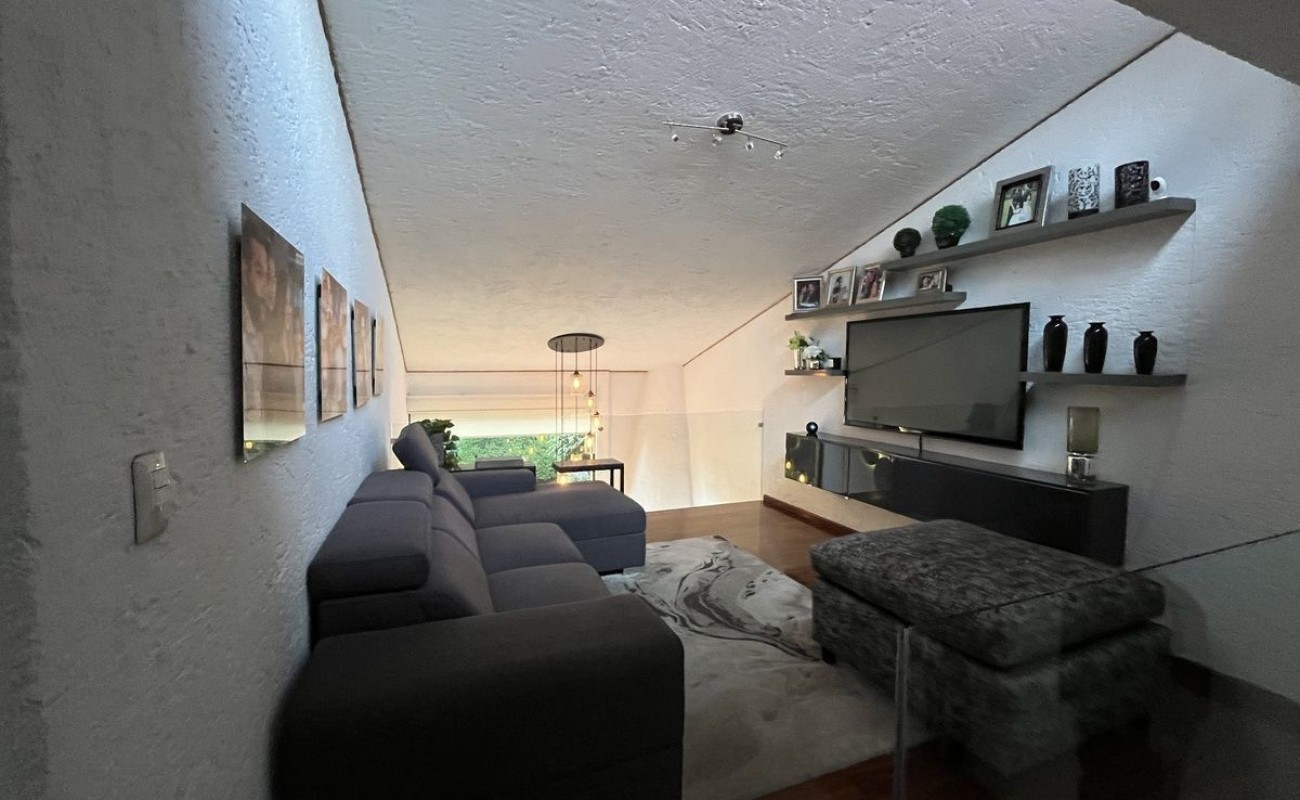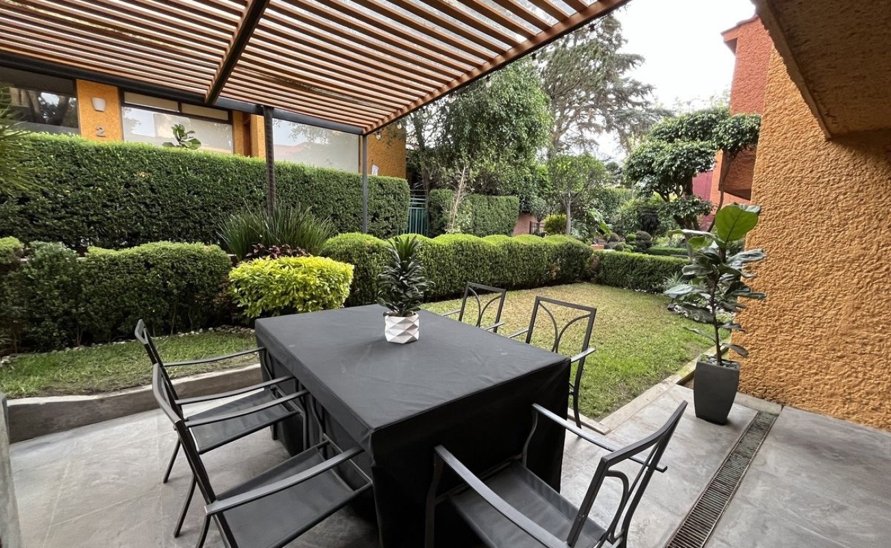 La casa fue remodelada en 2016, tiene 2 estacionamientos techados y bodega. Tiene entrando un lindo recibidor, medio baño de visitas, linda sala con doble altura y chimenea, comedor, cocina integral de granito con barra y gran alacena, patio de lavado, cuarto de servicio con baño. Sala y comedor dan a la terraza con pérgola y asador y a un lindo jardín privado. Tiene otra bodega abajo de las escaleras y subiendo un amplio y hermoso family room, las dos recámaras secundarias son muy amplias e iluminadas con gran closet de piso a techo y comparten baño completo. La recámara principal también es muy amplia con doble closet de piso a techo y baño completo adentro. $2500 de mantto