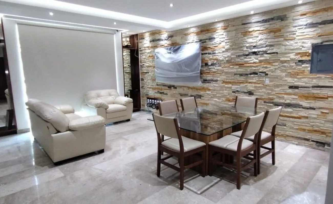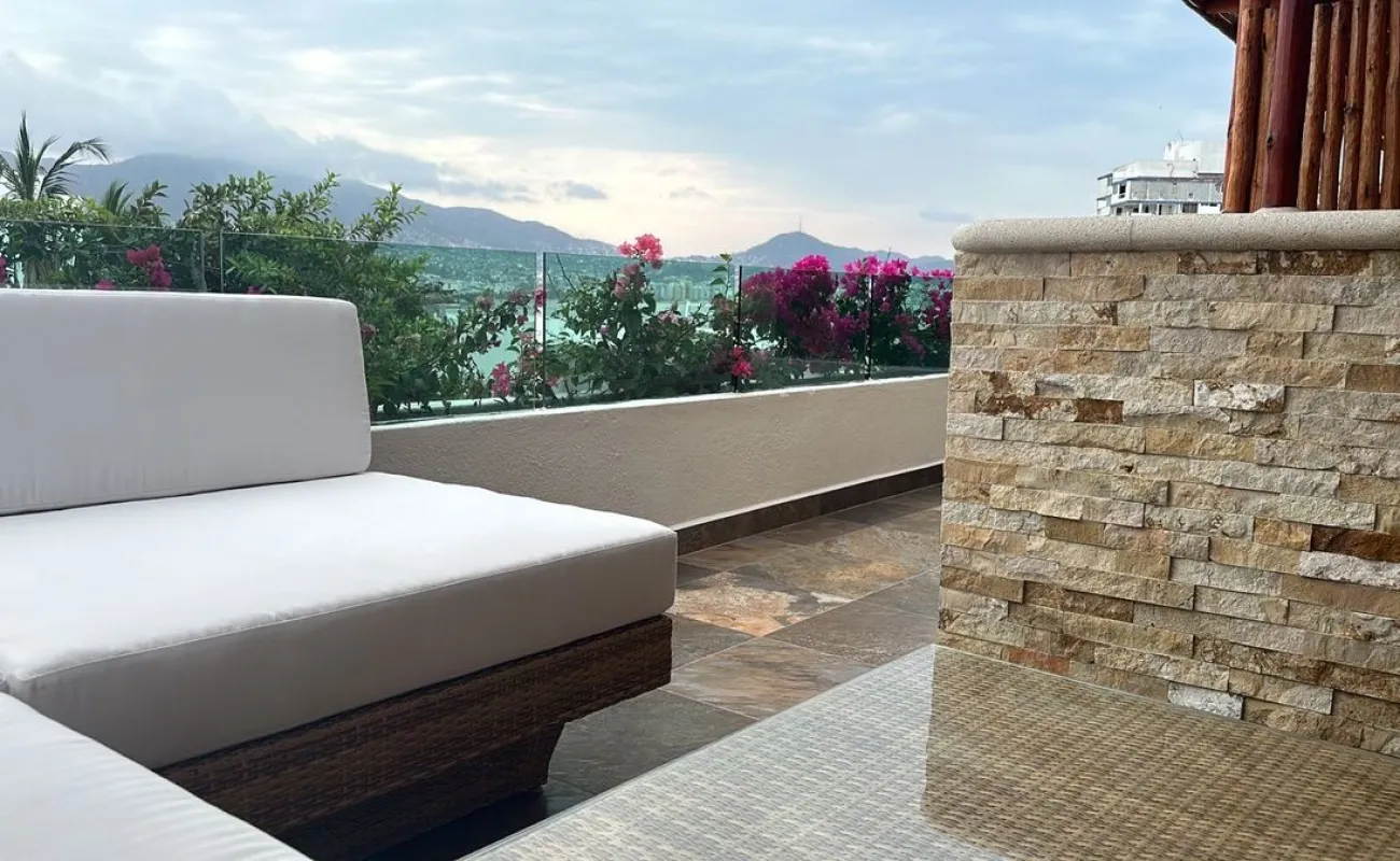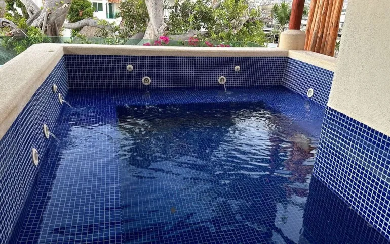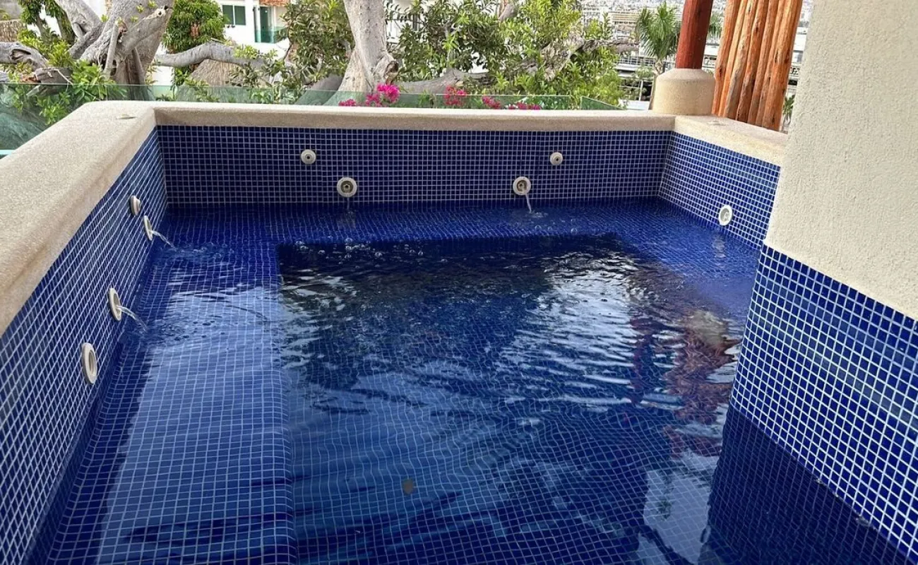 Cuenta con tres recámaras, dos baños completos y 2 lugares de estacionamiento. Tiene roof garden privado con jacuzz y medio baño.