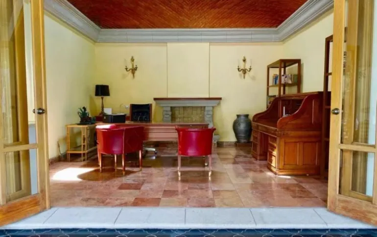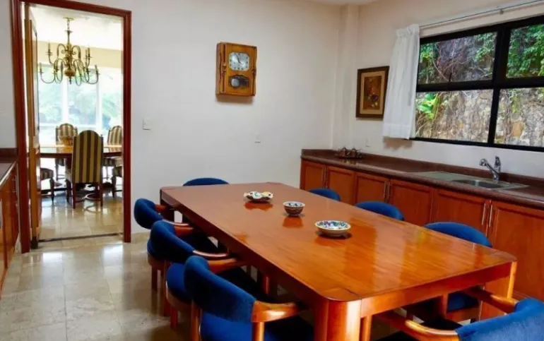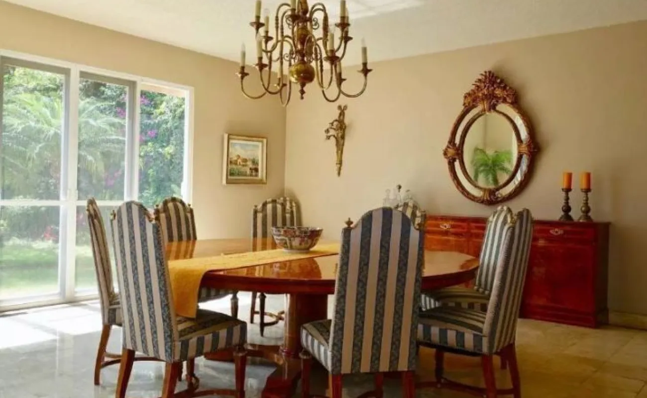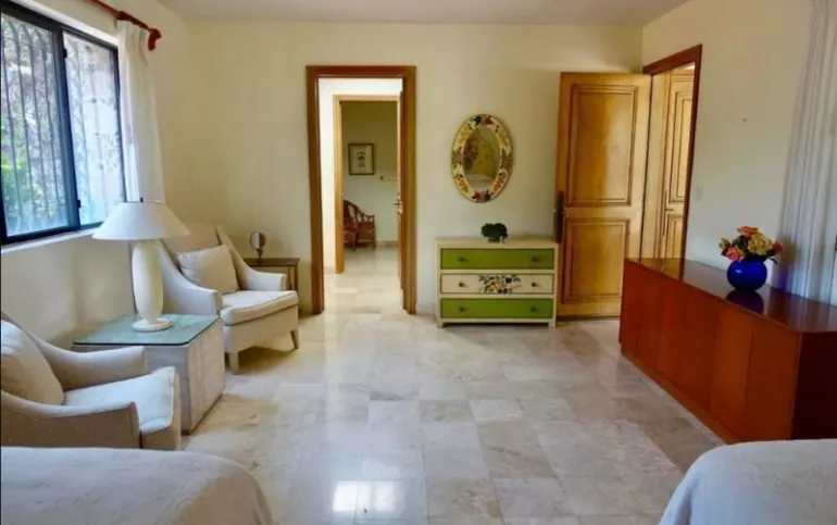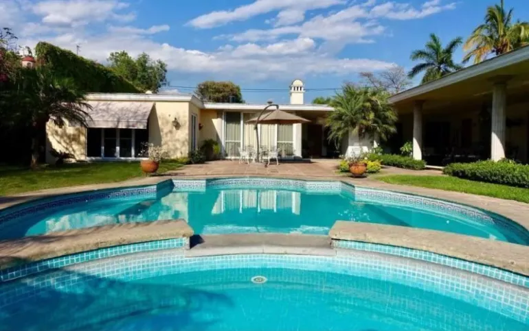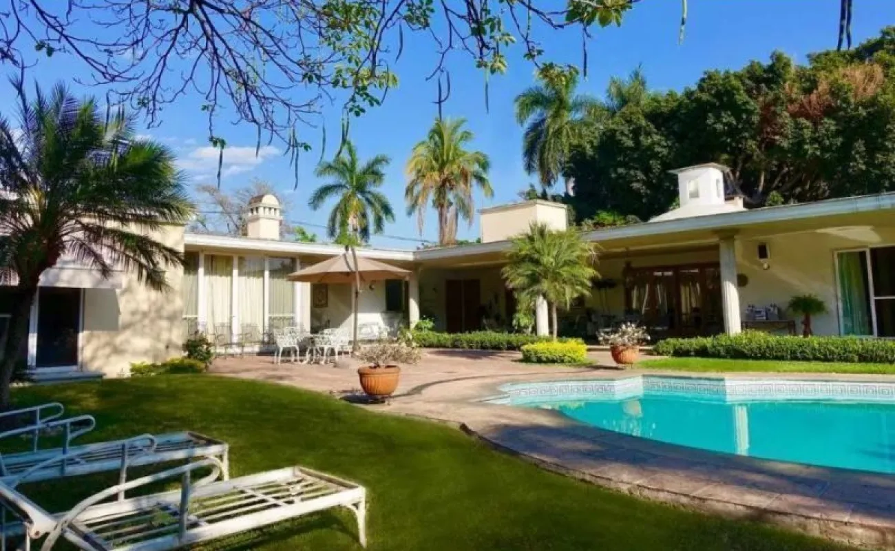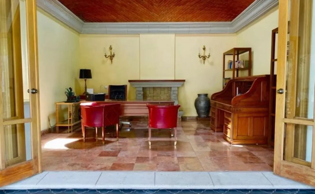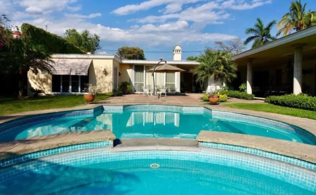 La propiedad tiene un estilo arquitectónico único y elegante, diseñada por el Arq. José parada. es una casa de un solo nivel construida en un terreno plano, la cual se encuentra en excelente estado de conservación. sus espacios son muy amplios con techos altos, y las recamaras cuentan con mucha independencia. todas las áreas se benefician de mucha luz y una magnifica vista. la casa cuenta con: amplio jardín, alberca, enorme terraza, 3 chimeneas (máster, sala, estudio), 3 amplias recamaras con baños privados, jacuzzi hidromasaje en la máster, dormitorio en suite, living, espacioso estudio, sala, comedor, antecomedor, cocina equipada, 2 cuartos de servicio con 1 baño, cuarto de lavado, cuarto de herramientas, y cámaras de seguridad, acceso a internet, aire acondicionado, chimenea, portón eléctrico, garage para 8 autos. tiene una excelente ubicación: av. Palmira, con rápido acceso a la autopista y vías alternas, a 5 minutos del centro y Club de Golf Tabachines.