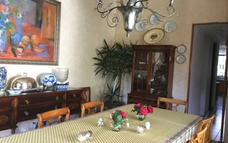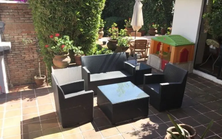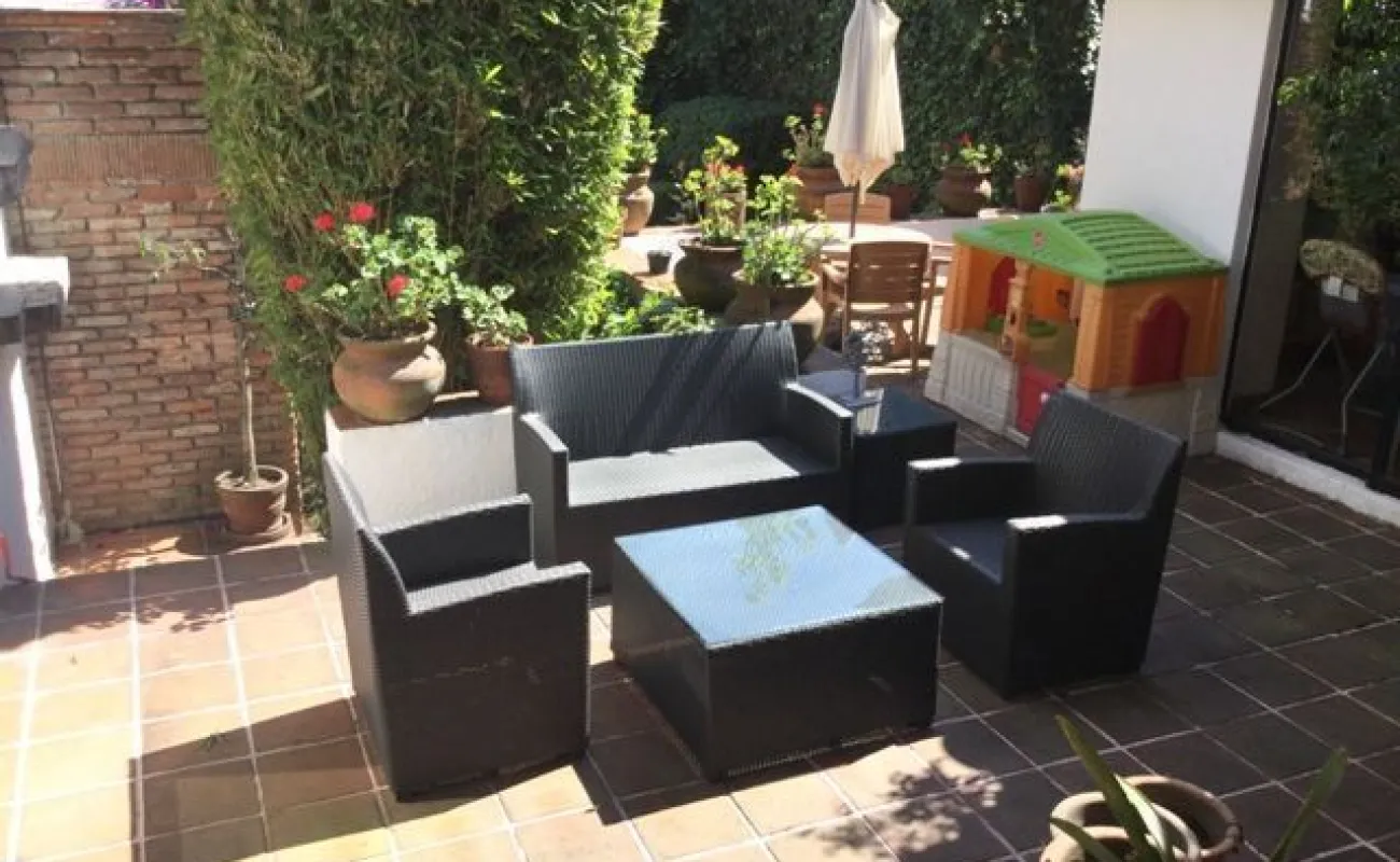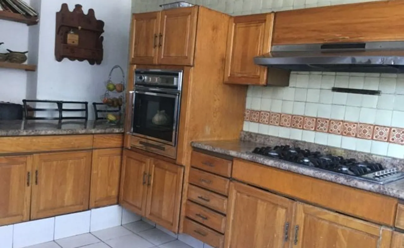 Sala, comedor, cuarto de tv, cocina integral, cuarto de servicio, terraza, jardín, garage para 2 autos.