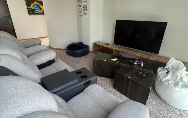 Salón de juegos con 2 baños en el sótano con con salida al jardín