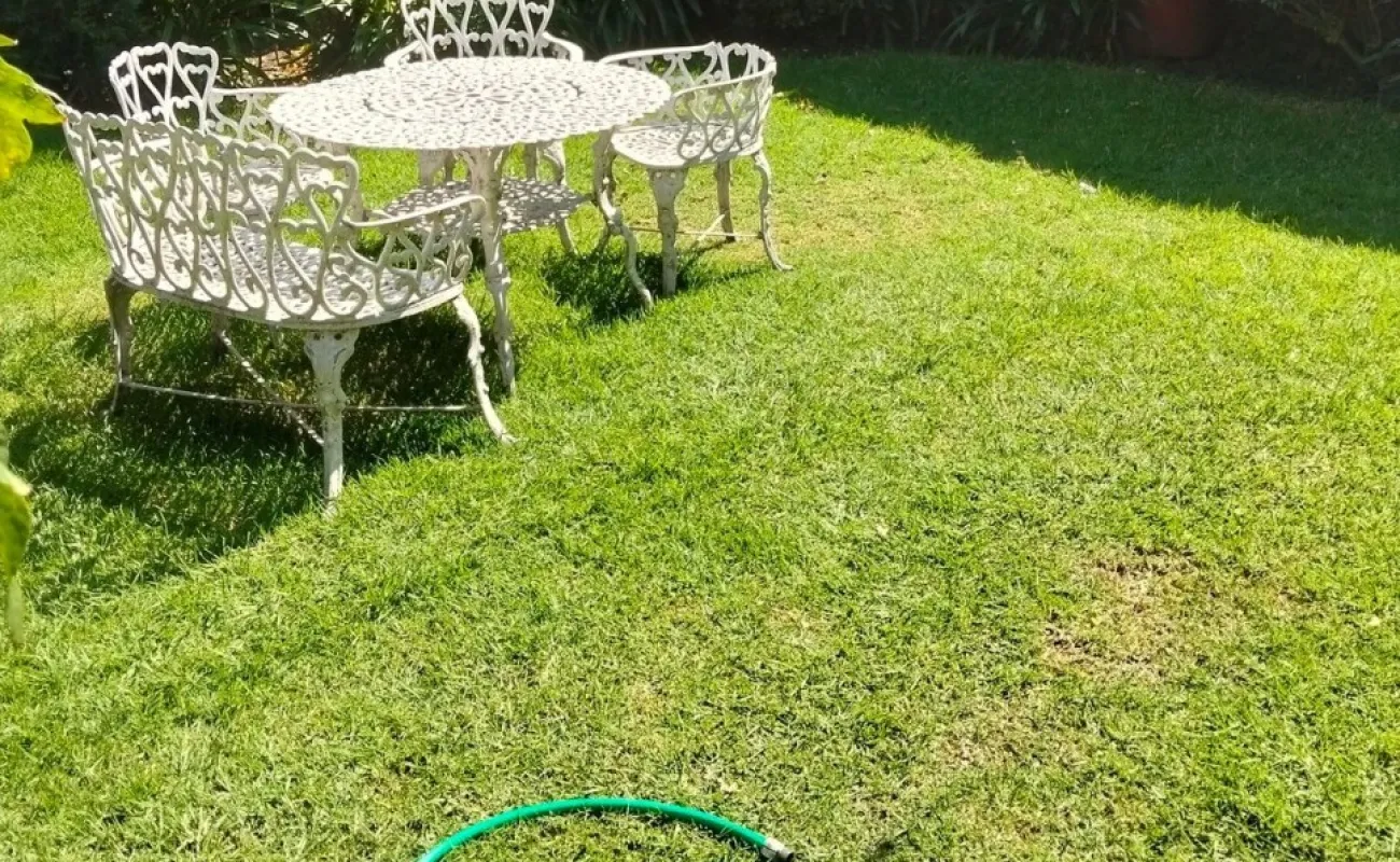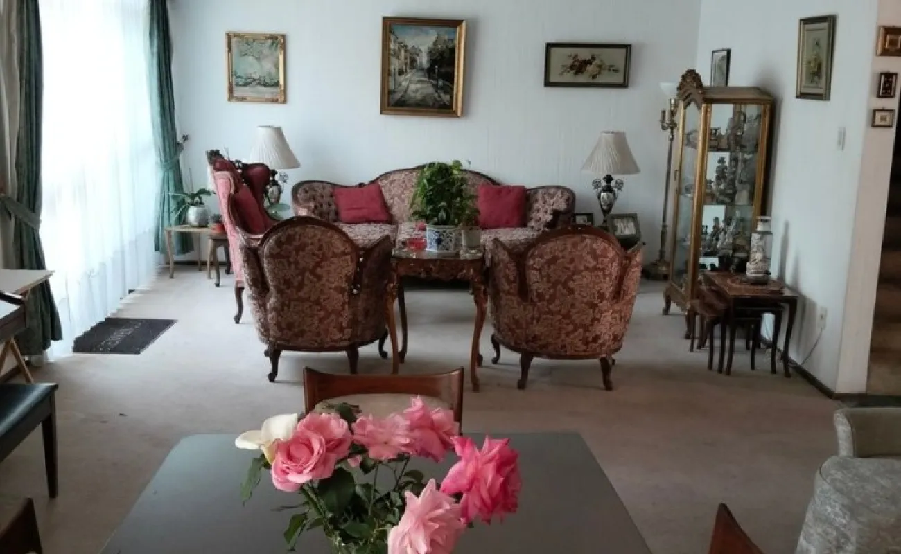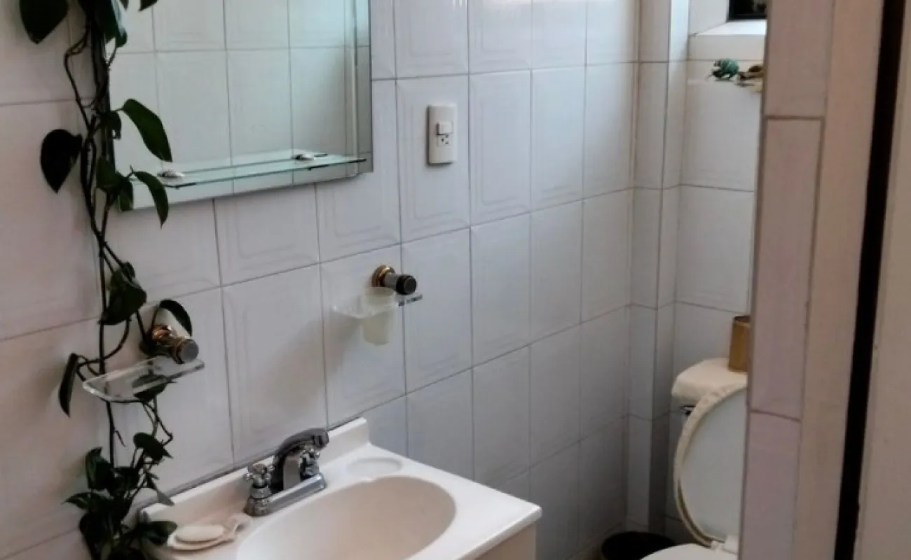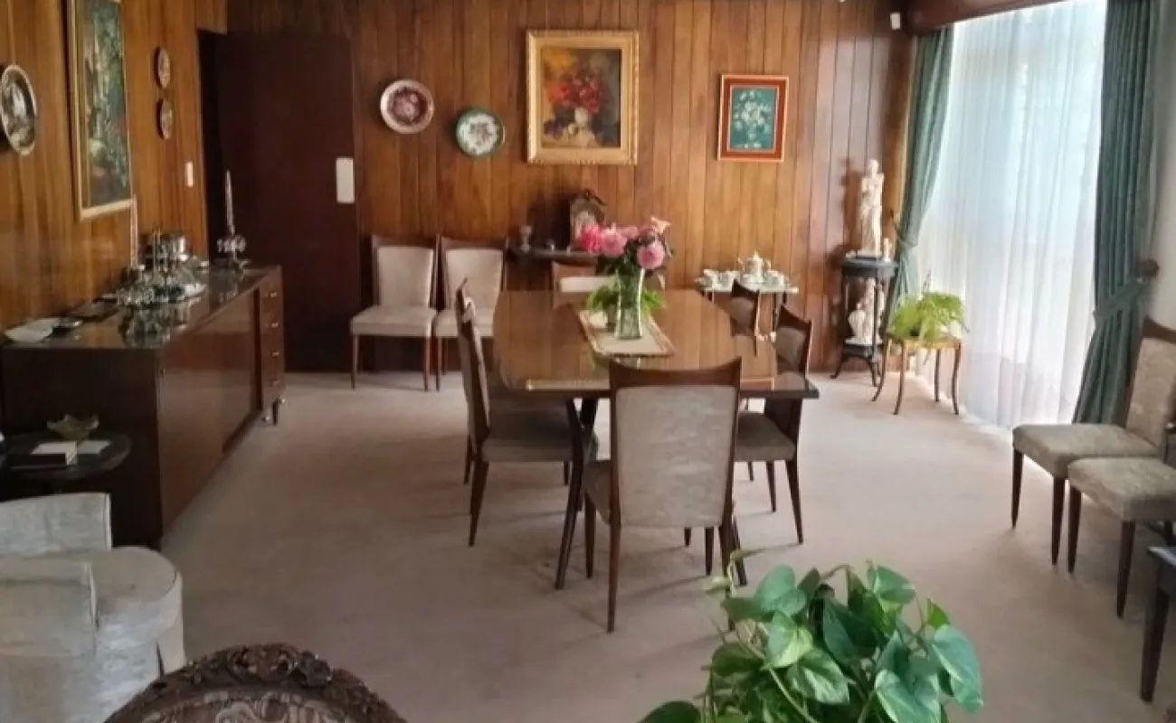 Planta baja: sala y comedor con buena iluminación natural, cocina con desayunador, despacho independiente, medio baño y closet de visitas, patio de lavado, cuarto de servicio y amplio jardín de 83 M2. Estacionamiento para dos autos.