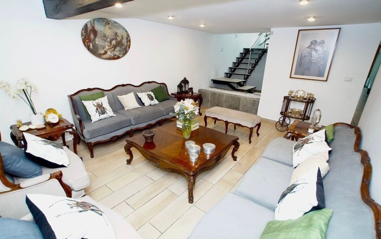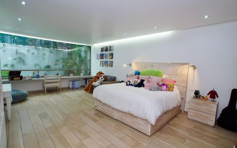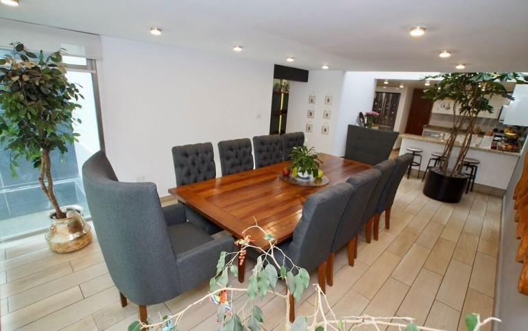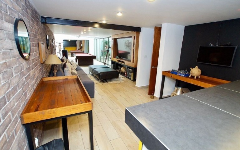 4 habitaciones, 5 baños y 3 medios baños.