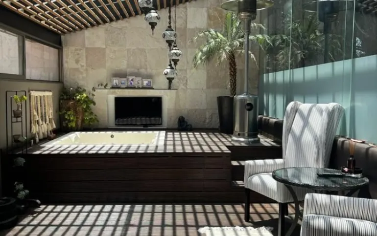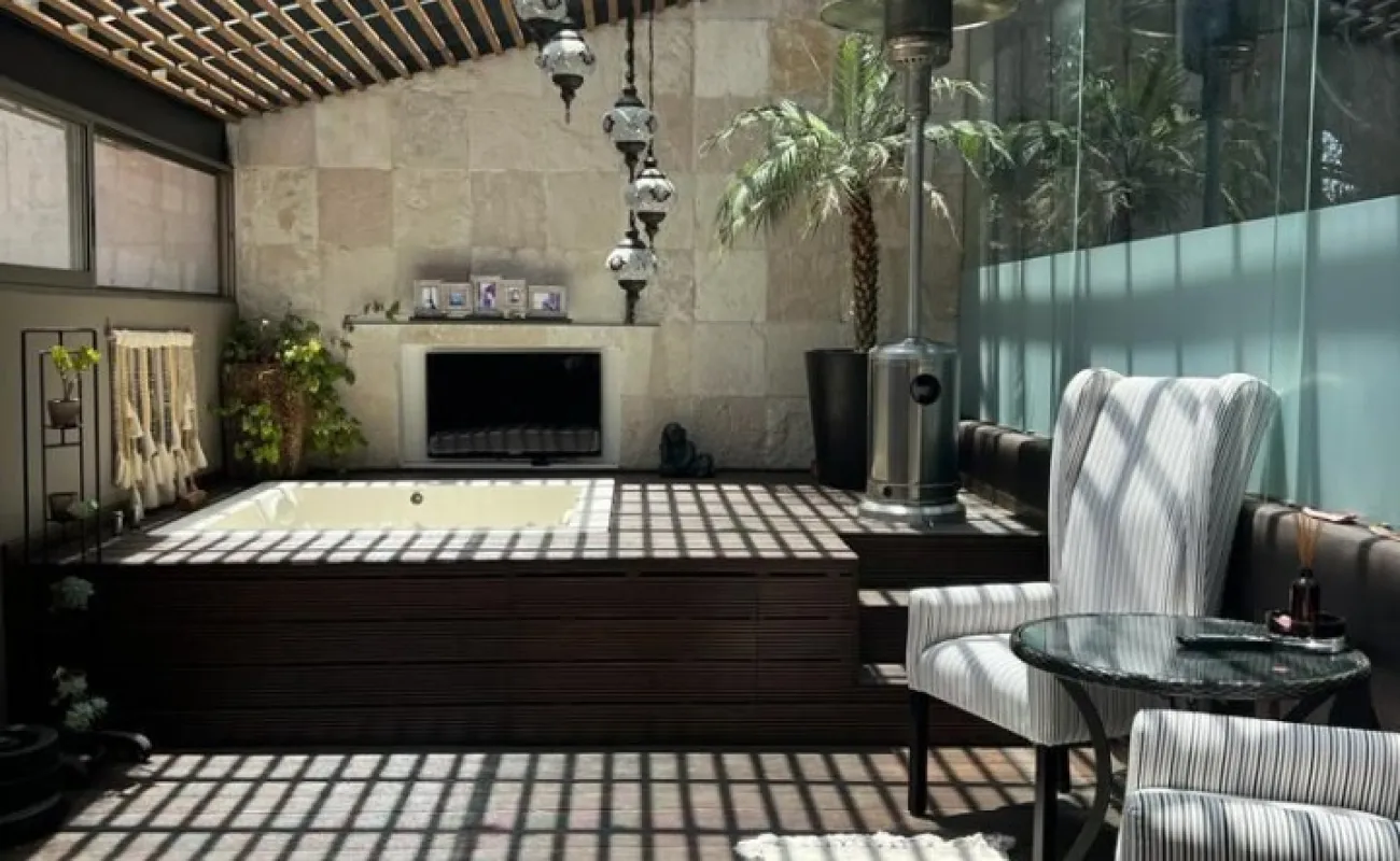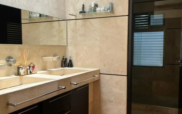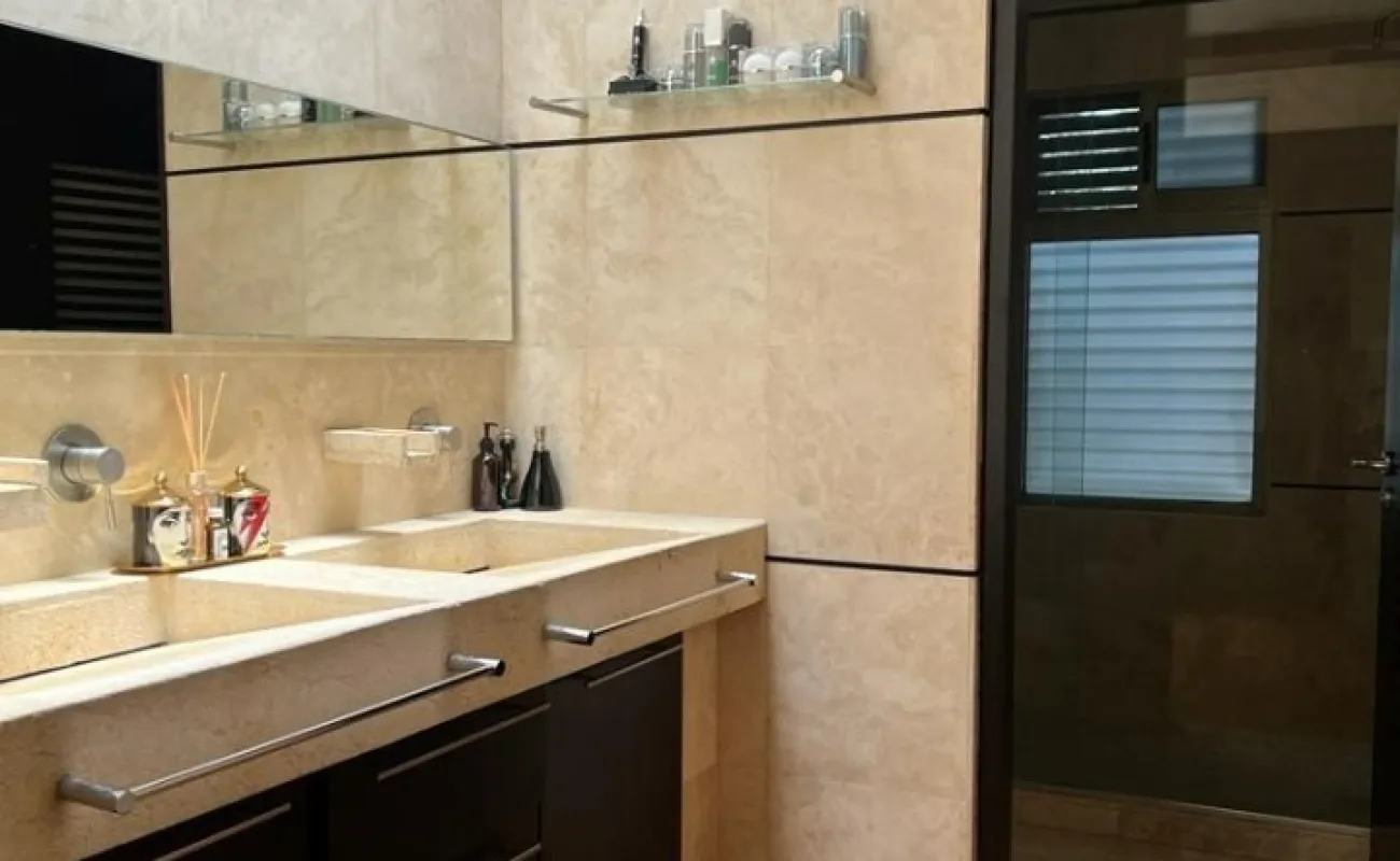 En la planta alta se encuentran las 4 recámaras con vestidor y baño cada una. La principal con sala de TV, chimenea de gas, vestidor muy amplio y terraza con jacuzzi.