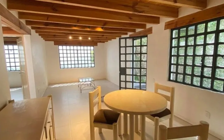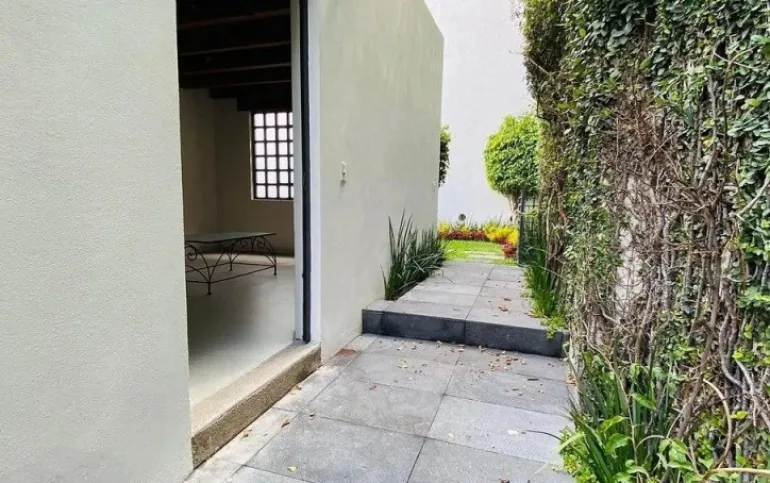 Adicionalmente cuenta con departamento exterior independiente, ideal para visitas o como estudio-consultorio, con sala-comedor, cocina abierta, dos recámaras y jardín.