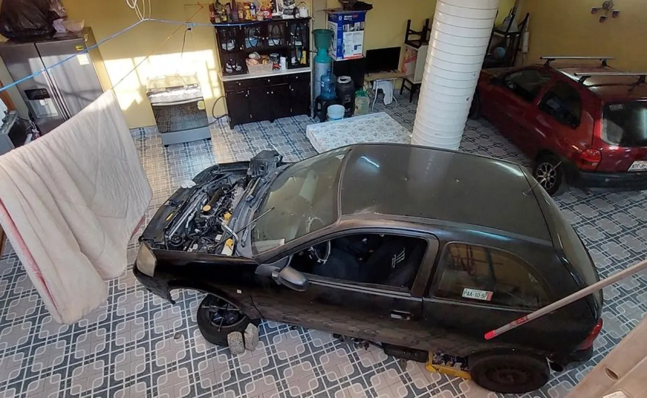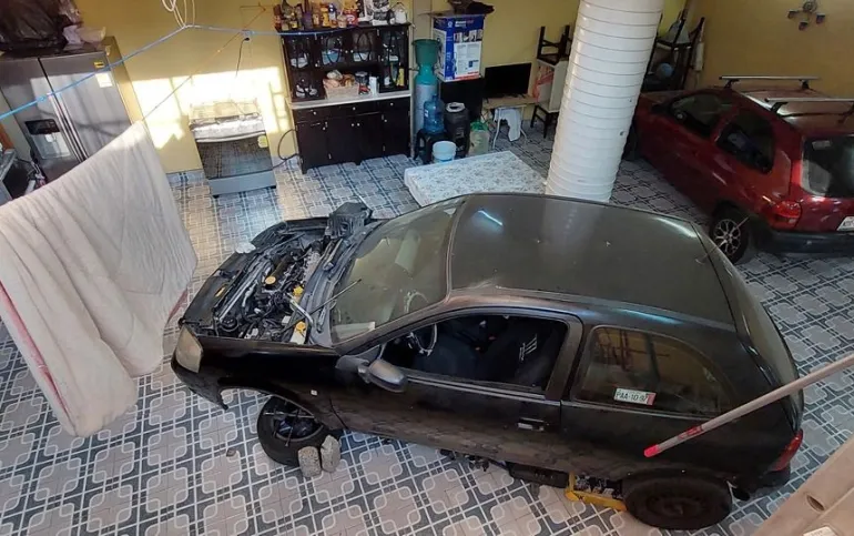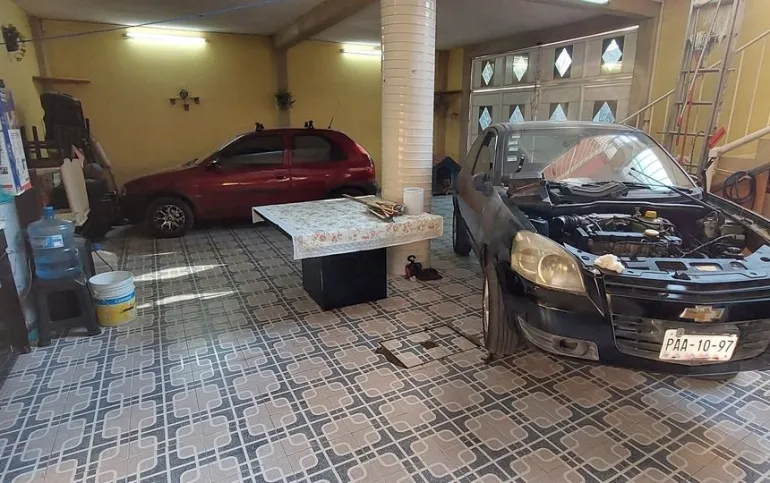 PB. Estacionamiento techado para 3 autos, 1 habitación, baño completo y área de lavado.