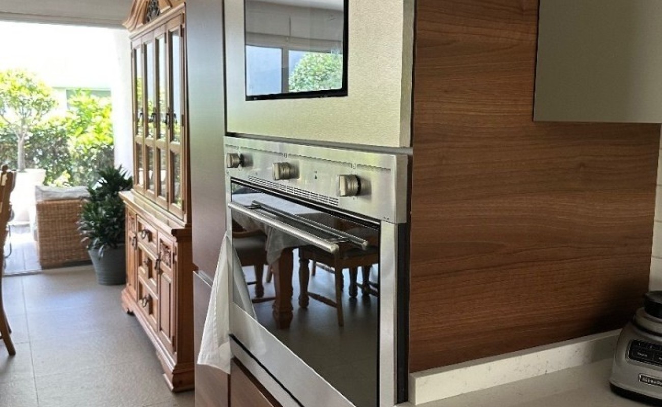 La sala y comedor se abren a una agradable terraza y jardín privado. Tiene una excelente cocina , gran cuarto de servicio, lavandería. Cuenta con tres estacionamientos y jardín común con acceso directo desde el jardín privado. Ideal para familias jovenes.
