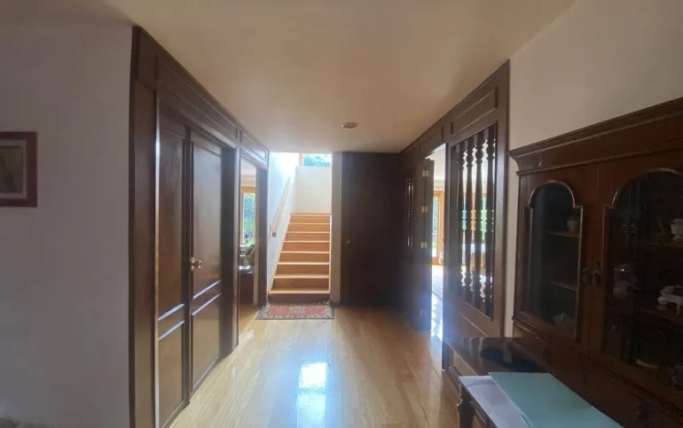Tiene un baño completo para visitas, cocina , antecomedor, un patio de servicio, 2 cuartos de servicio con un baño completo.