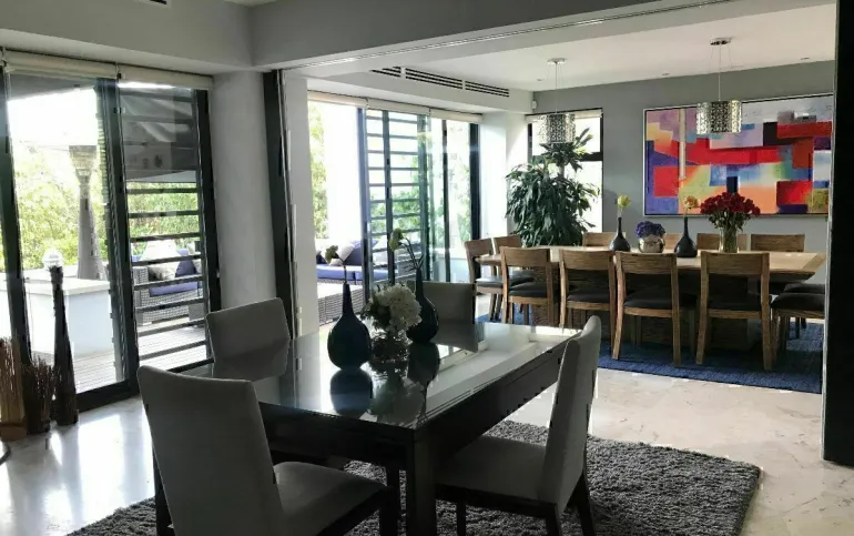 La casa está ubicada en Cumbres de Santa Fe, en una privada con seguridad. Además tiene una excelente distribución con hermosos espacios con varios desniveles. El precio de venta incluye la acción del club! La iluminación de la casa es muy buena, como se puede apreciar en las fotografías tiene techos son altos, lo que ofrece una sensación de amplitud, sus espacios son armoniosos y tranquilos. La casa tiene calefacción, además de que tiene sonido. Cumbres de Santa Fe es un desarrollo que ofrece un ambiente tranquilo y seguridad. Está ubicado en la supervía, los residentes tienen acceso al uso de jardines, andadores y parque. Descripción 416 m2 de terreno 601 m2 de construcción 3 recámaras, con opción a una cuarta Sala Comedor Sala de televisión Estudio Oficina 3 Terrazas Jardín con asador Cuarto de servicio 6 estacionamientos No incluye la acción del club En caso de estar interesados en la propiedad, nos pueden contactar: vía correo electrónico, WhatsApp o teléfono; para agendar una cita. Gracias Contacto 5555-010198 Celular +521-5555-010198 WhatsApp [email protected] TENEMOS MÁS PROPIEDADES EN NUESTRA PÁGINA WEB. www.cmatusrealty.com Los precios publicados y la disponibilidad pueden cambiar sin previo aviso por lo que se debe de verificar con la inmobiliaria y los propietarios de los inmuebles. Los gastos e impuestos de escrituración NO están incluidos en el costo de venta, ni los avalúos. Todas las medidas enunciadas son meramente orientativas, las medidas exactas serán las que se expresen en el respectivo título de propiedad de cada inmueble La publicación de la presente información NO representa una oferta pública por lo que toda transacción debe de hacerse de forma personal de acuerdo con las prácticas comerciales de la inmobiliaria y para poder ser válida requiere de la autorización expresa de los propietarios de los inmuebles. NO incluye mobiliario, arte o cualquier elemento de ornamentación o decoración en el inmueble. GDPT