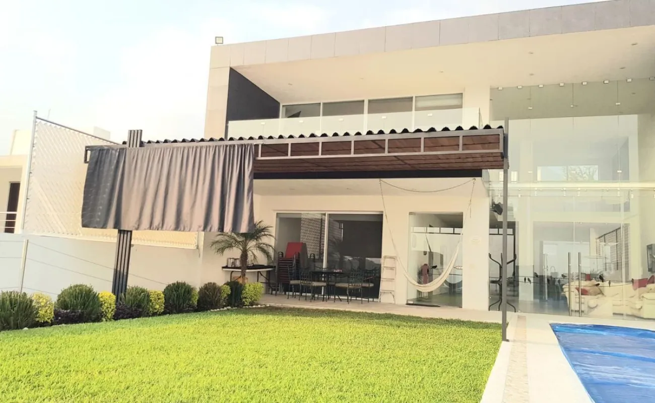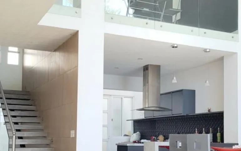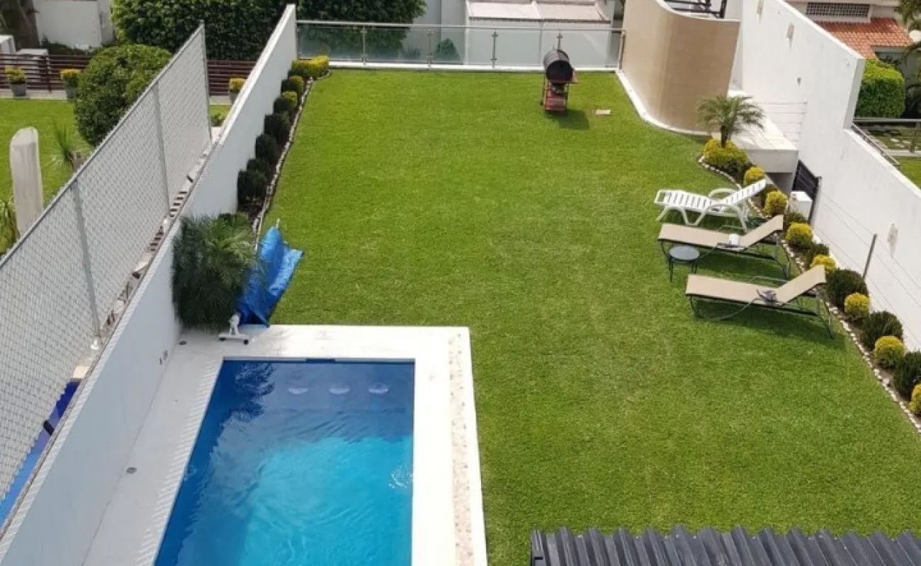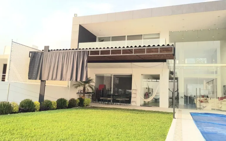 4 recámaras, 5 baños, balcón, estudio, cocina integral con barra, campana, sala, comedor. Enormes ventanales que integran la casa con el jardín, vista panorámica. Jardín con terraza y alberca. 5 lugares de estacionamiento, 3 de ellos techados.