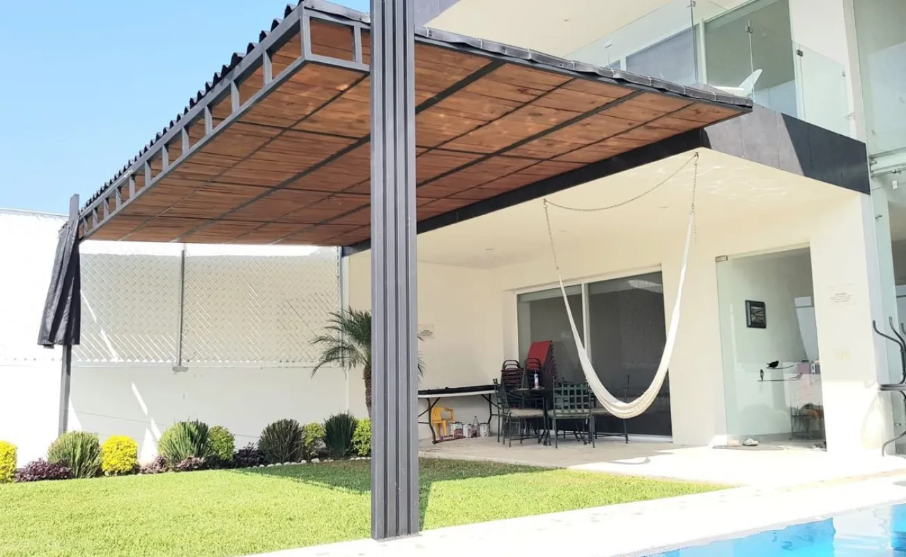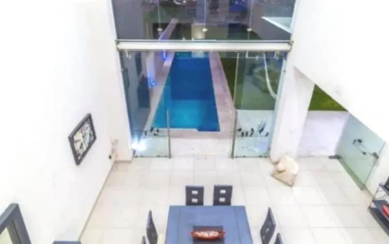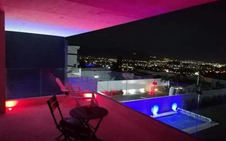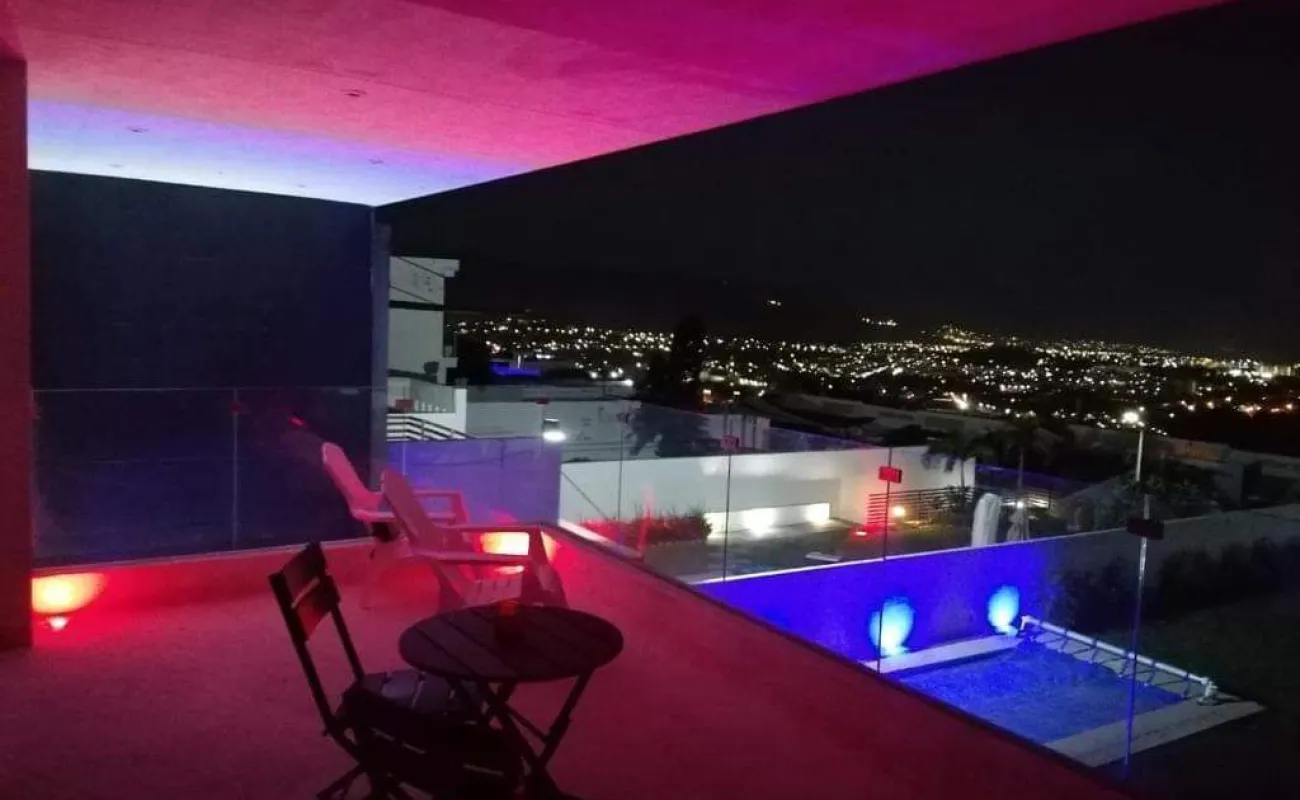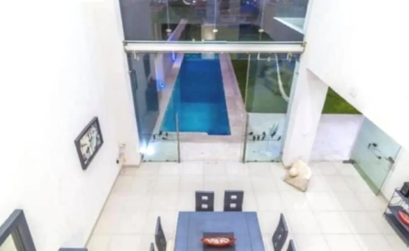 4 recámaras, 5 baños, balcón, estudio, cocina integral con barra, campana, sala, comedor. Enormes ventanales que integran la casa con el jardín, vista panorámica. Jardín con terraza y alberca. 5 lugares de estacionamiento, 3 de ellos techados.