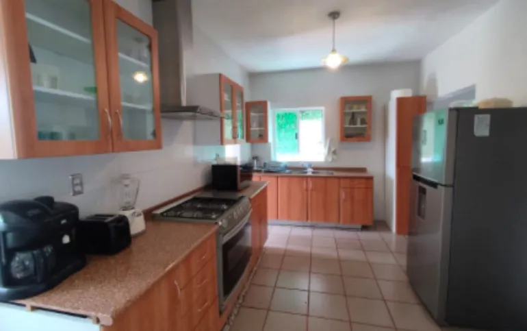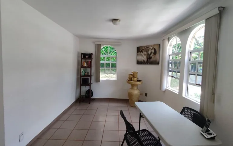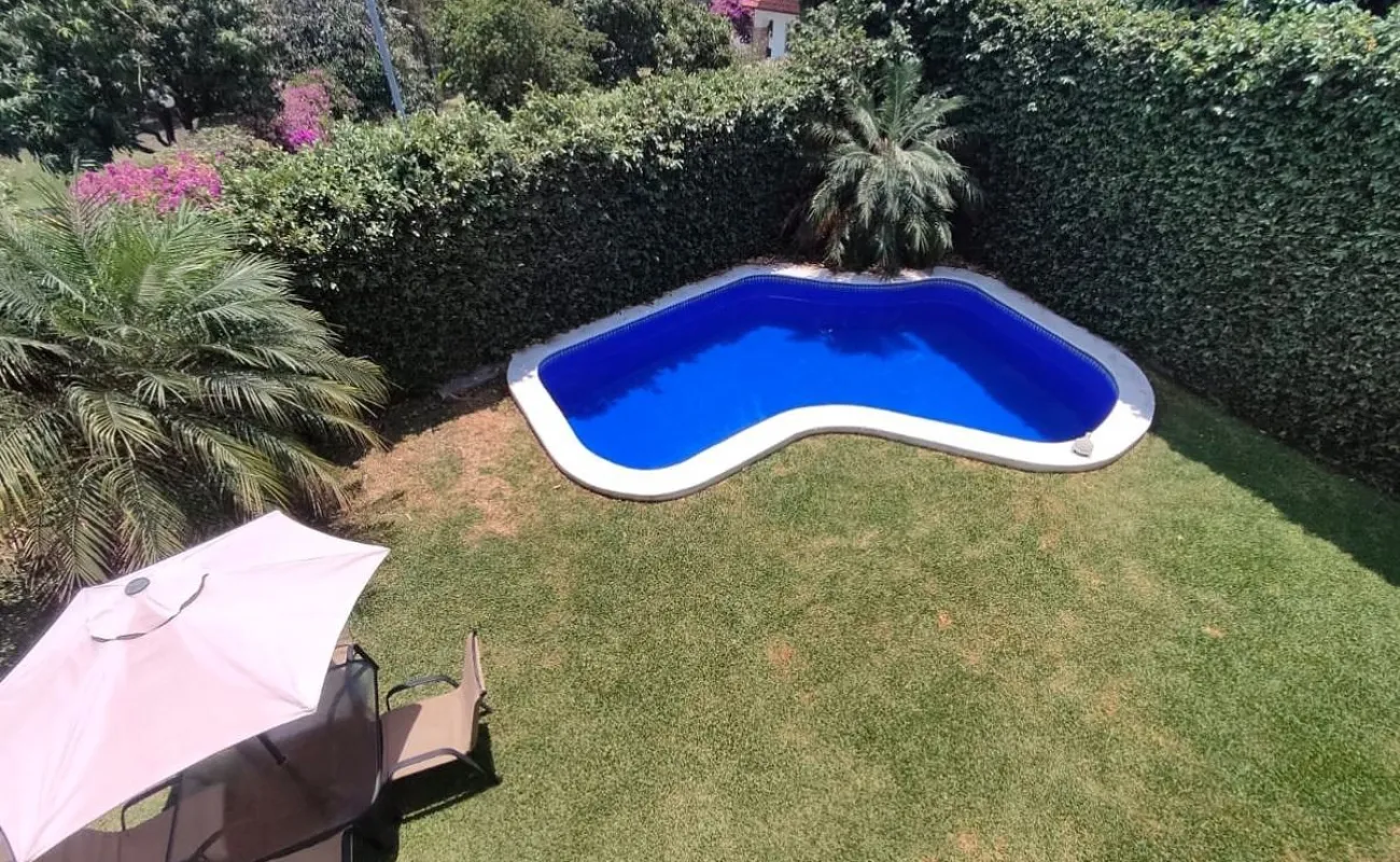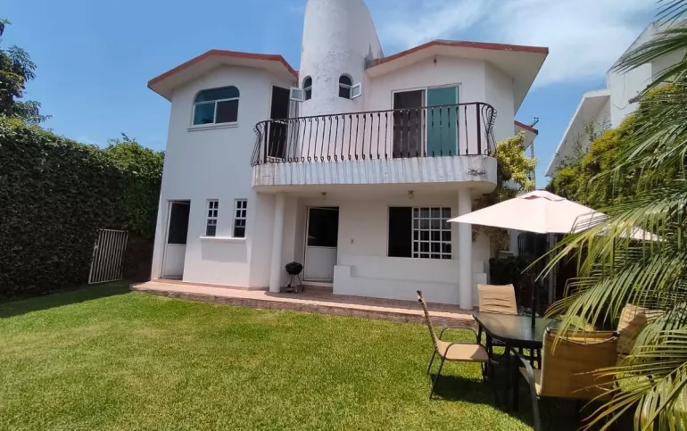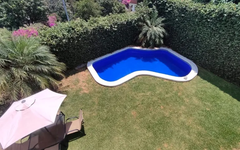 Casa de 2 niveles en Venta en Exclusivo Fraccionamiento Lomas de Cocoyoc, Morelos El primer nivel consta de Sala (a doble altura), Comedor, Cocina integral equipada con estufa y campana, Alacena, una recamara, ½ baño para visitas, Cuarto de lavado, 3 estacionamientos (descubiertos) Pequeña Terraza, Jardín, Alberca. El segundo nivel se compone de 3 recamaras, La recámara principal cuenta baño, tina, espacio para clóset, aire acondicionado y ventilador de techo, Las 2 recámaras secundarias cuentan clóset y con balcón compartido con vista al jardín y alberca, 1 baño completo que da servicio a las recámaras secundarias. La casa se ubica en una zona muy tranquila, sobre una calle de poco tránsito, cabe señalar que por la orientación en que está construida la casa gozará de un clima fresco dentro de ella todo el tiempo. El fraccionamiento cuenta con Casa Club, la cual ofrece mediante el pago de membresía los siguientes servicios y amenidades, campo de golf con 18 hoyos, canchas de tenis, de pádel, de futbol, alberca, vapor, sauna y restaurante.