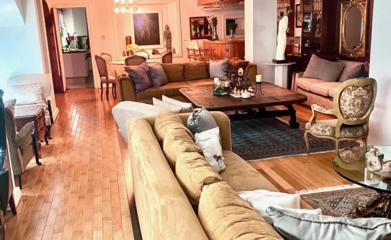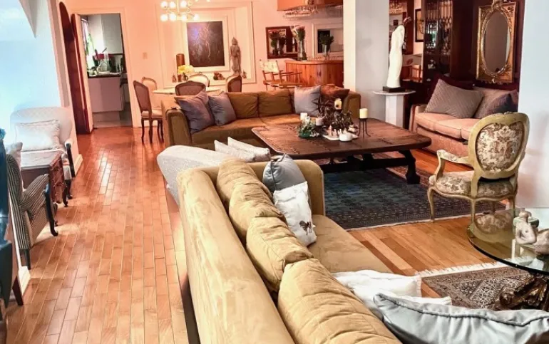 El departamento cuenta con amplia terraza con vista a Insurgentes y bodega, sala, comedor, alacena, cocina integral, 3 recámaras, cada una con su baño y con closet, cuarto de servicio, área de lavado, cuarto de TV y tiene entrada independiente.
