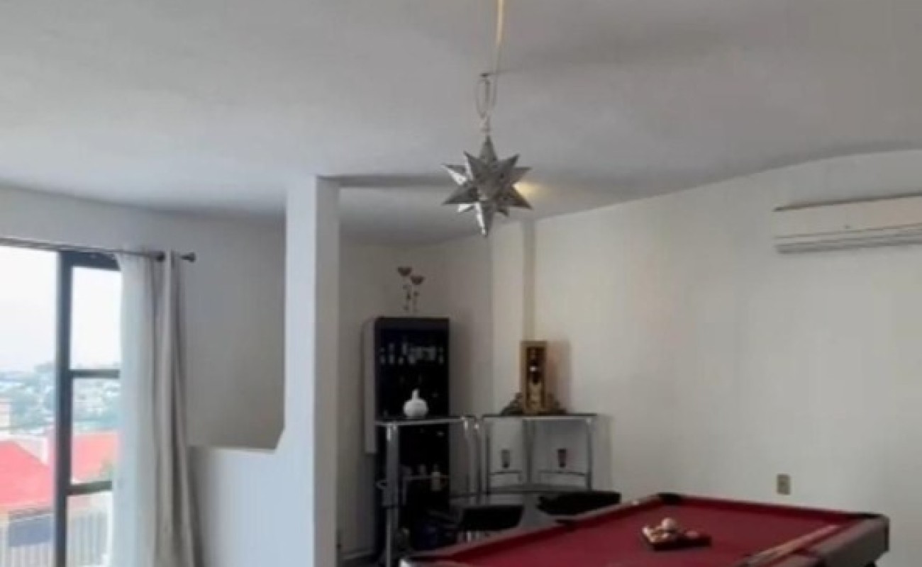 Estancia corrida con pisos laminados que integran de manera armoniosa la sala y el bar, creando un ambiente acogedor y social. La chimenea aporta calidez y elegancia al espacio, ideal para convivencias familiares o reuniones.