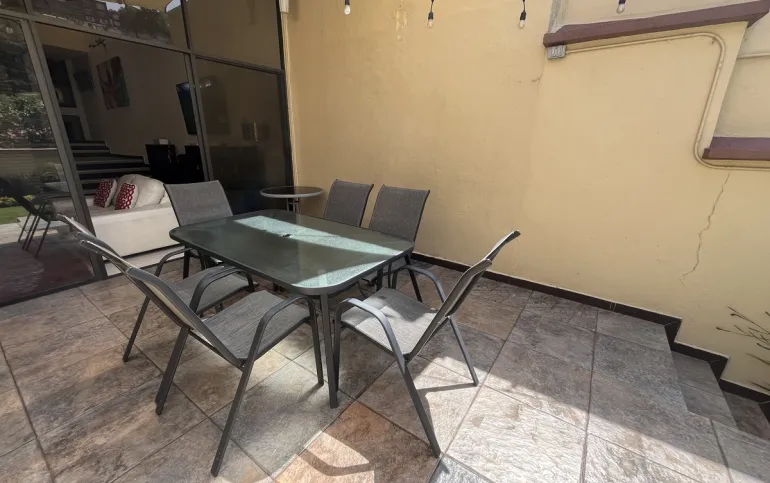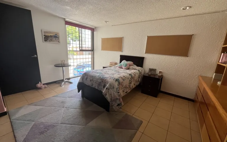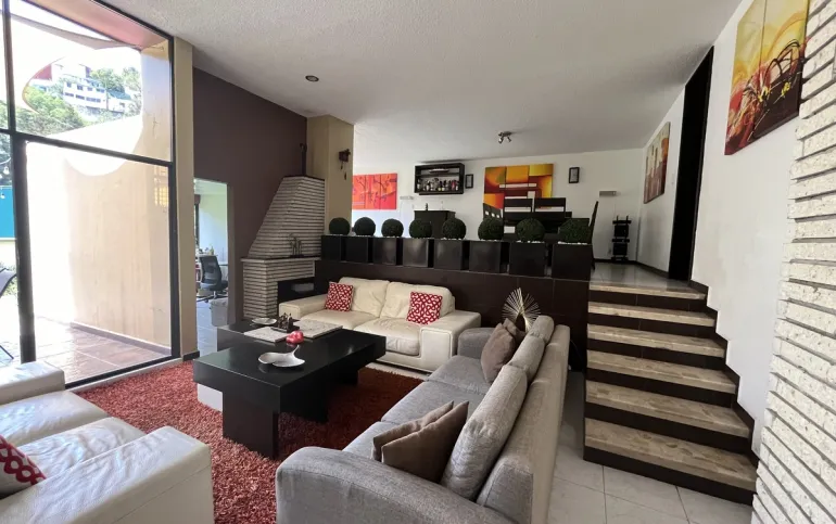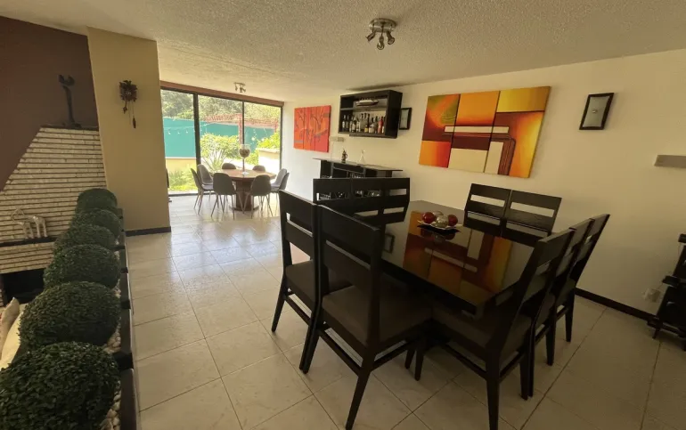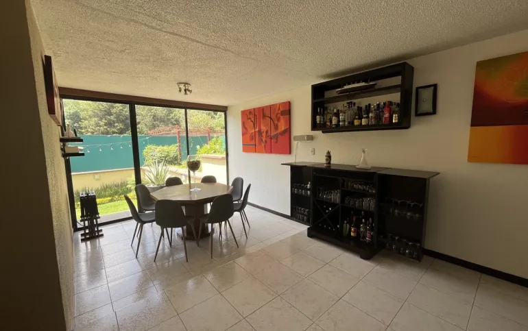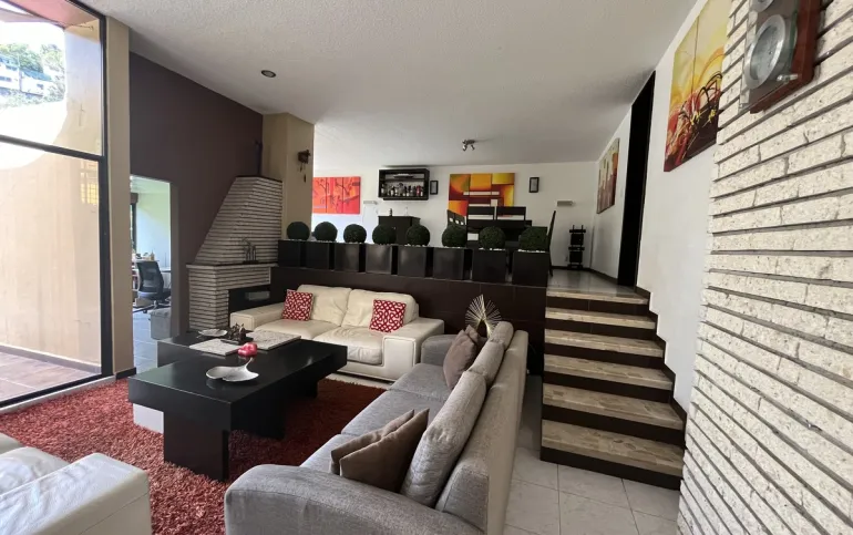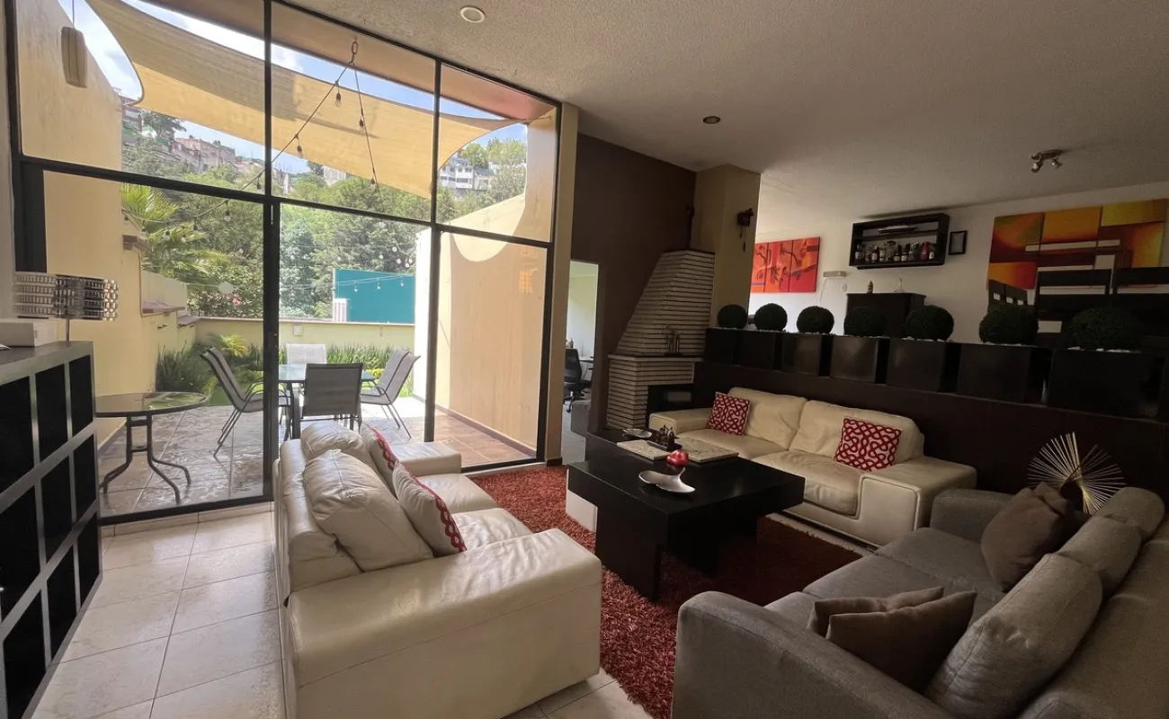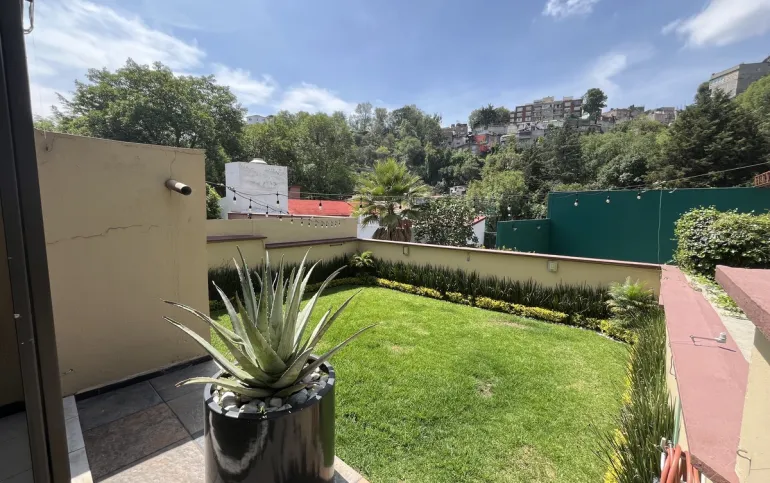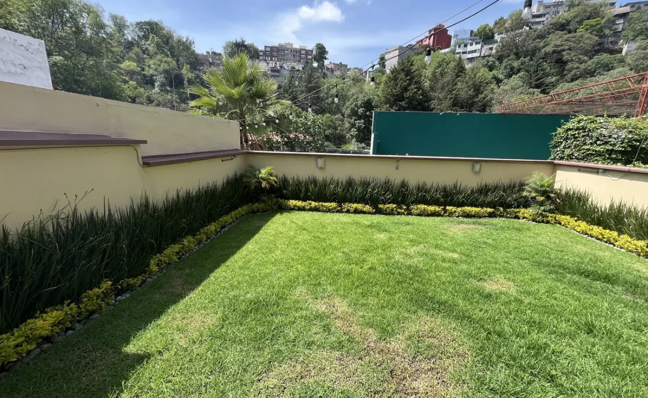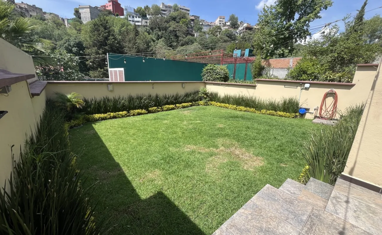 Hermosa casa en Venta en fraccionamiento con seguridad en Lomas de las Águilas!!! Tiene 3 lugares de estacionamiento con portón eléctrico. Entrando a la casa del lado derecho está un medio baño de visitas , cuenta con espacio para sala con doble altura y el comedor, más un funcional e iluminado espacio de juegos y un lindo estudio muy cómodo . Toda la estancia da a un hermoso jardín plano y verde con sistema de riego con aspersores y de goteo de aproximadamente 90 m2 y una terraza de 20 m2 con vista arbolada. La cocina es hermosa y muy espaciosa con gran alacena y lugares de guardado así como lugar para ante comedor. Subiendo al primer piso se encuentran las 2 recámaras secundarias iluminadas y con gran closet que comparten baño completo, family room o tercera recámara secundaria con terraza y la recámara principal con closet enorme y otro espacio de guardado con cajoneras además del baño completo. Cabe mencionar la escalera de servicio que va desde la PB hasta el 2o piso donde está el área de lavado, patio de tendido, gran bodega y el cuarto de servicio con baño completo. Toda la casa tiene iluminación natural!!! Remodelada hace 12 años!!! Ven a conocerla!!!