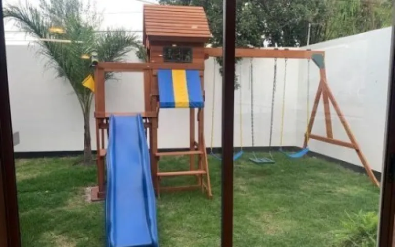 Sala, comedor, cocina integral, estacionamiento techado para 3 autos, jardín amplio, cisterna.