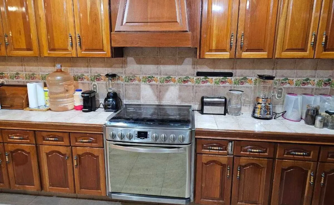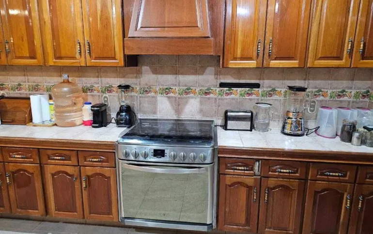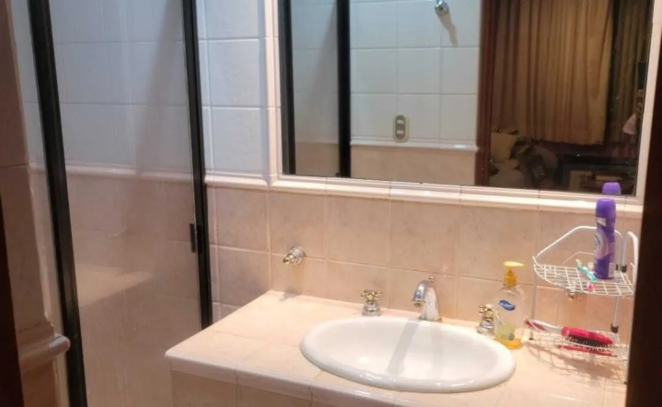 PB: amplio jardín, estacionamiento para 7 autos, habitación para visitas con baño (ocupada como gimnasio / sala de TV), terraza / patio, cuarto de servicio con baño, escalera de acceso a la casa, asador, cocineta, 2 medios baños, bodega.