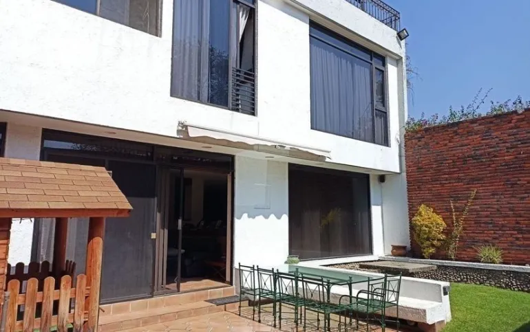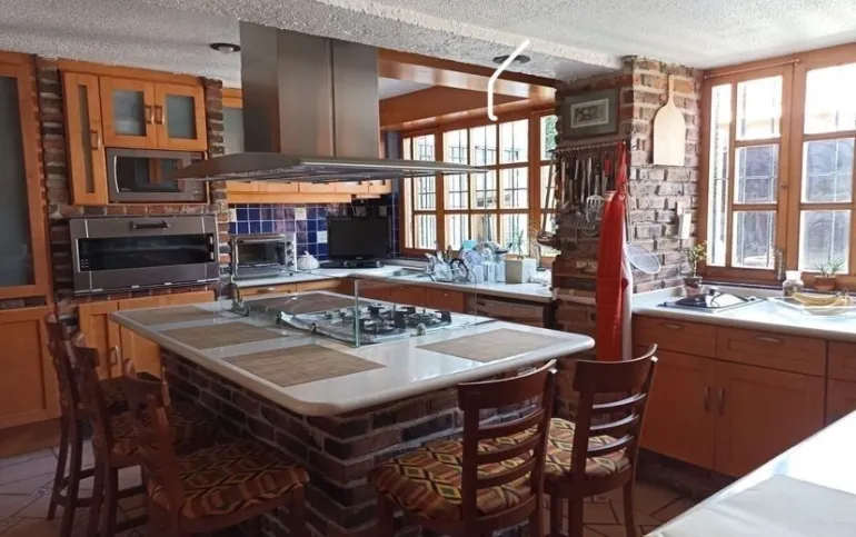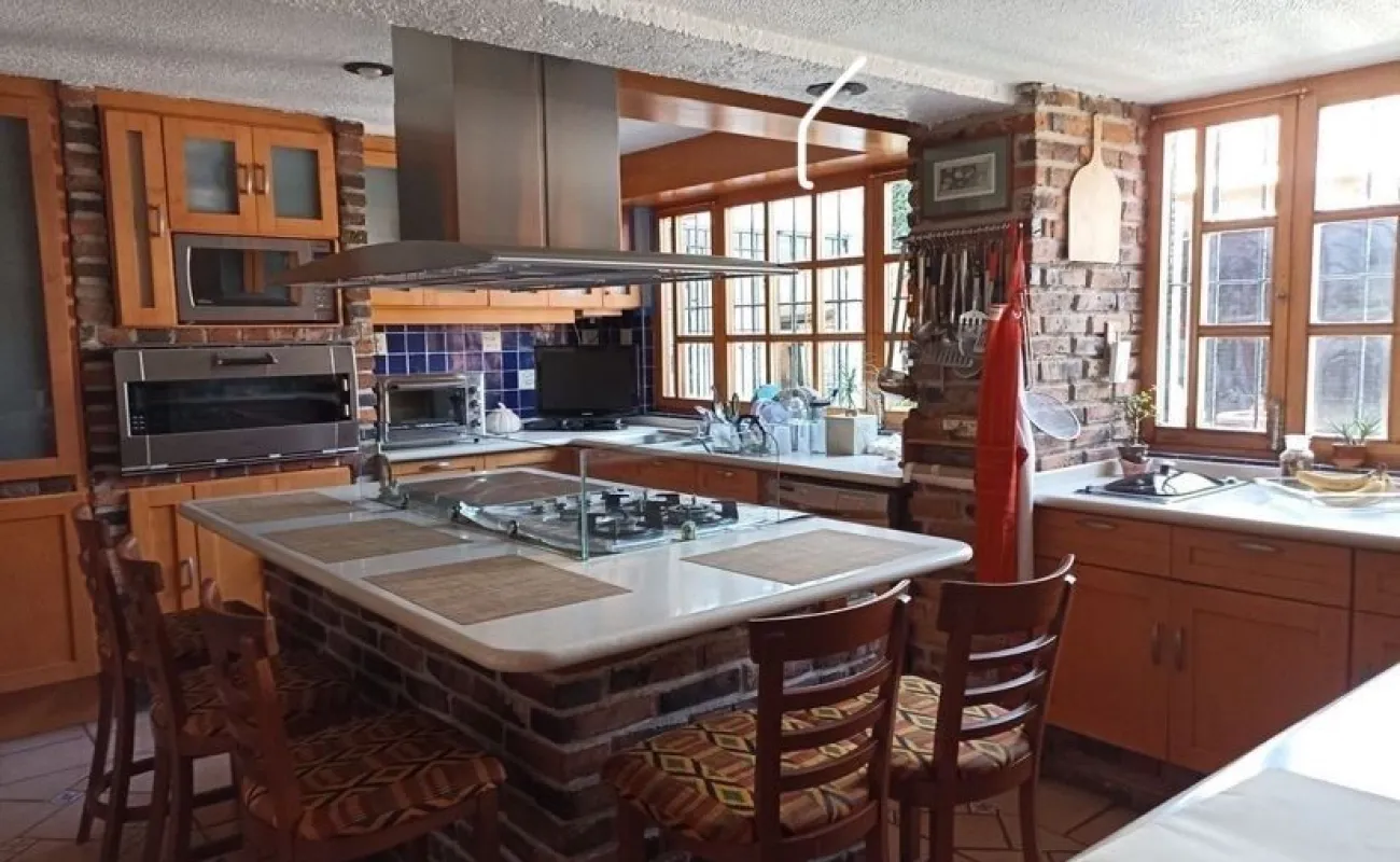 Hermosa casa en venta, muy iluminada y con espacios abiertos, en planta baja se encuentra una doble sala, comedor y cantina con vista al precioso jardín con asador muy completo y una fuente muy relajante. Cocina integral muy cómoda, amplia con una isla, toda de madera muy fina y muchas gavetas,, cómo también su amplia alacena, aún lado se encuentra una bodega y cuarto de lavado. La planta baja cuenta con 2 medios baños. En el primer piso se encuentran 3 recamaras muy amplias, todas con baño y vestidor, también con espacios abiertos y doble family room más un espacio para oficina, cuenta con un domo con una preparación para instalarle un vitral, la cuarta recámara o estudio está en un 2do piso en donde están 2 Terrazas con vista al jardín y al ajusco. En azotea se encuentra el cuarto de servicio con baño. La casa tiene techos y muebles empotrados de madera fina, cómo acabados de lujo.