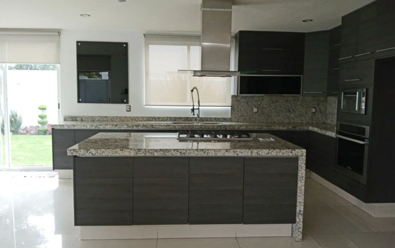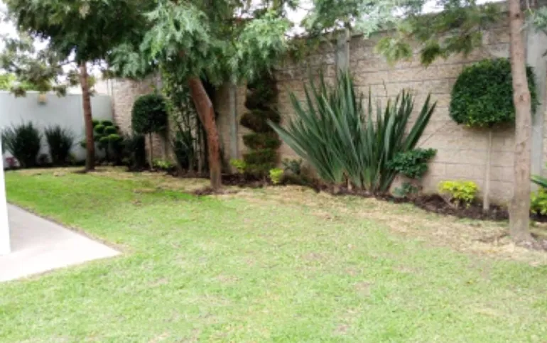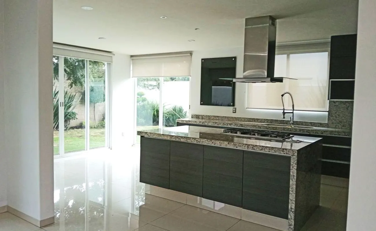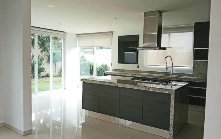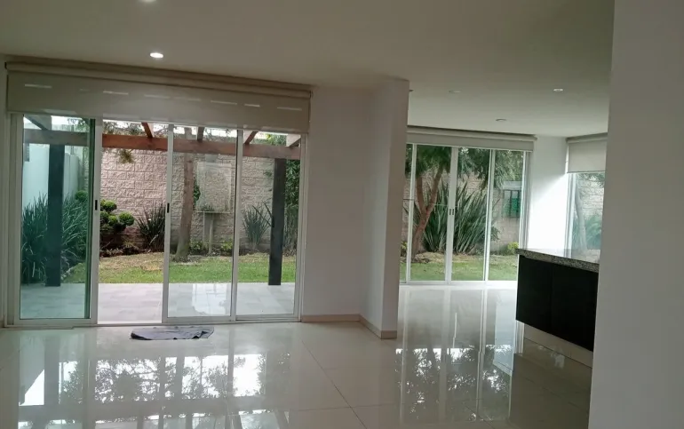 sala, comedor, cocina super equipada con granito, ante comedor, alacena, terraza en el jardin muy amplio ,medio baño, estacionamiento para 3 autos.