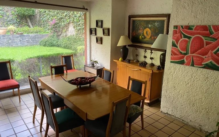 Preciosa casa en San Jerónimo Aculco, de 300m2, H03, excelente ubicación a 2 minutos de Periferico y Luis Cabrera para tomar supervía poniente, 5 minutos para llegar a centro comercial Artz. La casa consta de tres recámaras, la recámara principal muy grande cuenta con doble espacio en donde cabe perfecto una sala, tiene vestidor con baño y vista al jardín, la recámara 2 cuenta con closet y baño y la recámara 3 solo con closet, también hay un espacio entre las recámaras para sala de TV. La planta baja es muy espaciosa está dividida en sala muy amplia, comedor y cocina con ventanales de piso a techo con vista a el precioso jardín. En planta baja aún los de la cocina se encuentra el cuarto de servicio grande en donde cabe una cama king size y tiene baño. En el sótano se encuentra el área de lavado y una bodega. También hay acceso a la casa desde el estacionamiento techado en donde hay lugar hasta para 4 coches.