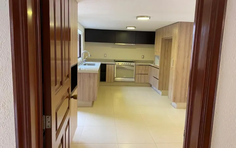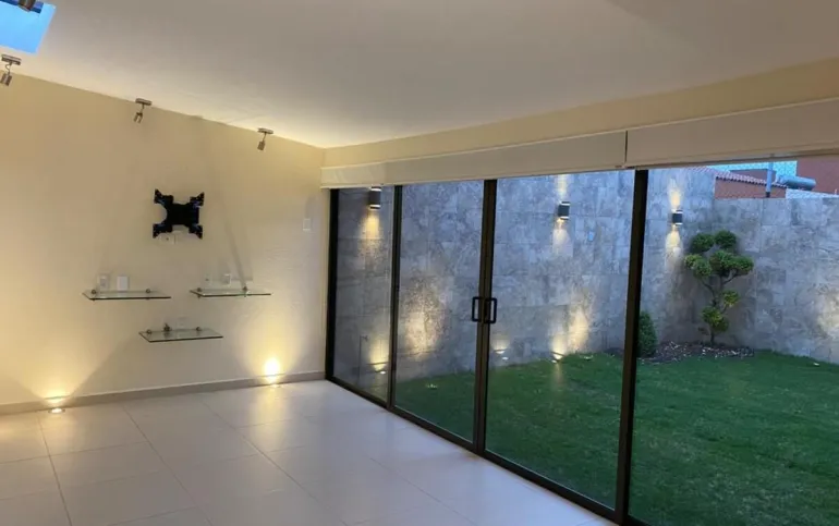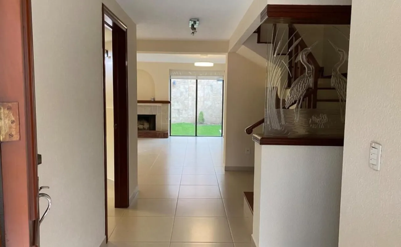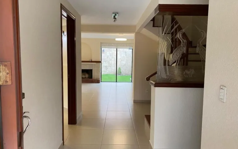Sala, comedor, cocina integral, área de lavado, cuarto de servicio, estacionamiento 2 autos, jardin, cisterna,gas estaciinario.