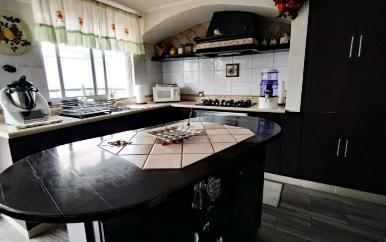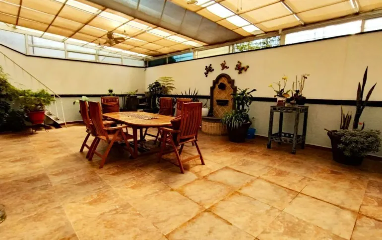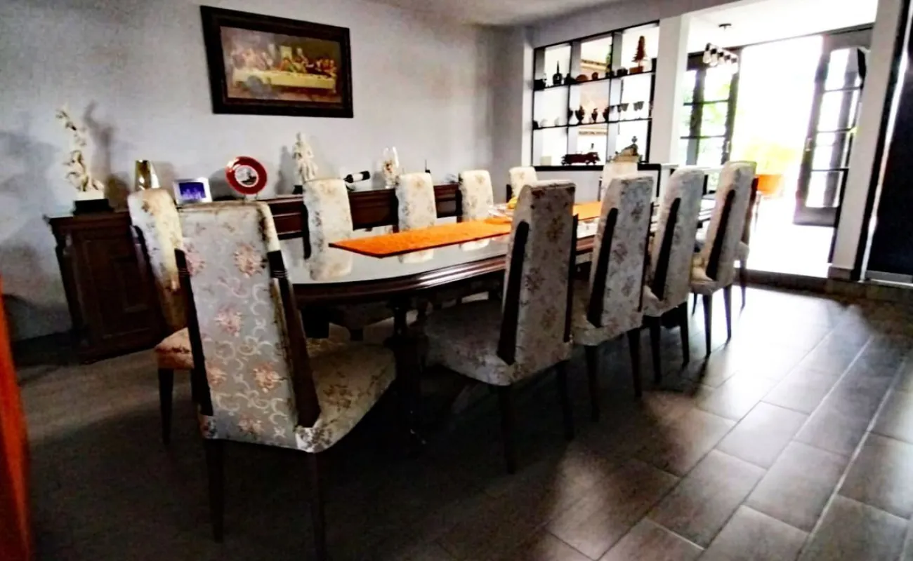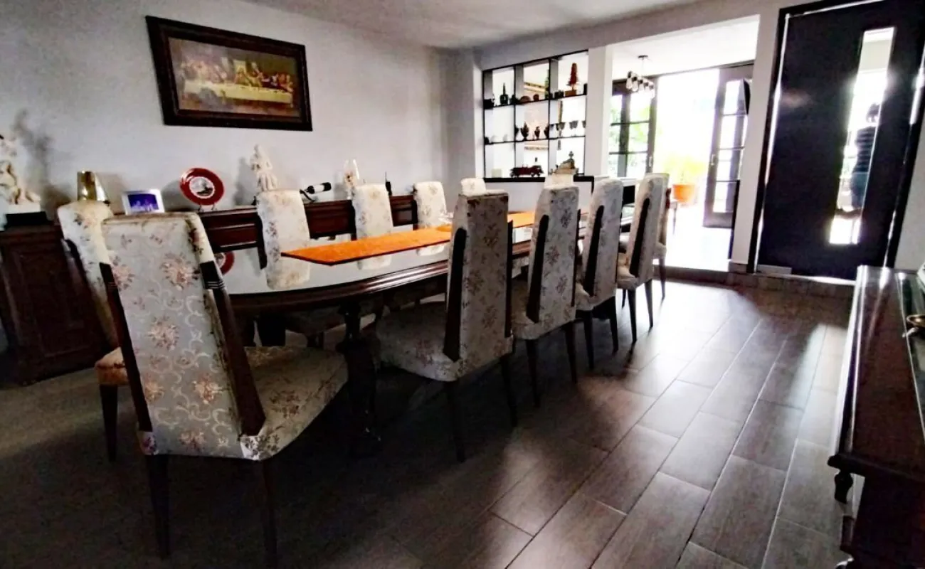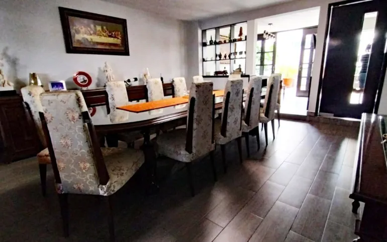 Sala, comedor. oficina con medio baño. cocina integral, desayunador, sala de TV, estacionamiento para 3 autos, patio atras con techo de acrilico y piso muy amplio .