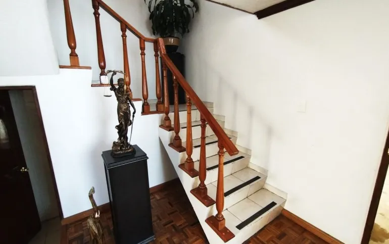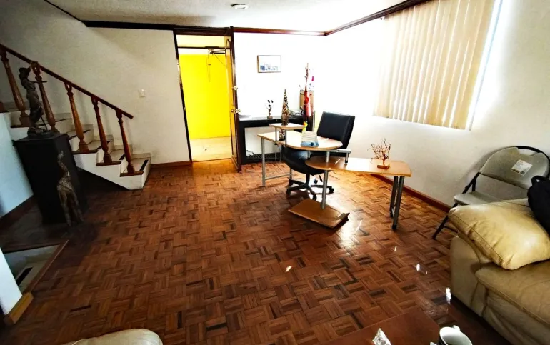 Sala, comedor, cocina integral, medio baño, área de lavado, cuarto de servicio con baño, estacionamiento para 3 autos, cisterna, gas estacionario.