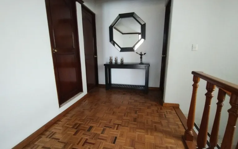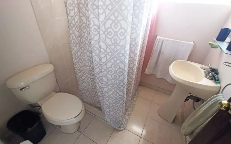 3 recamaras la principal con baño y closet, otro baño completo que comparte las otras dos recamaras.