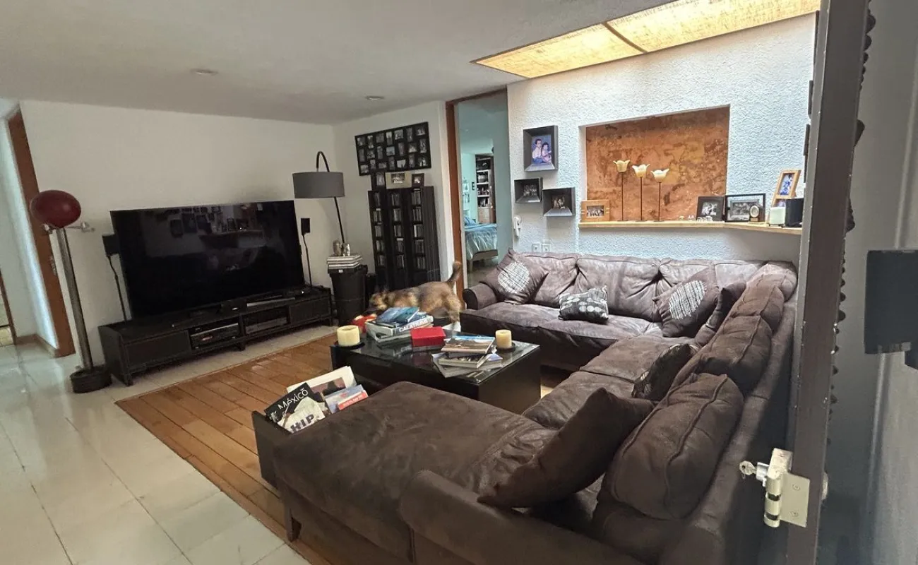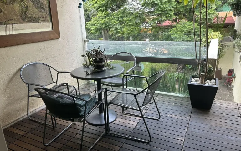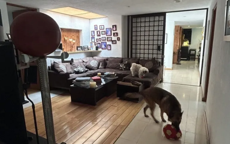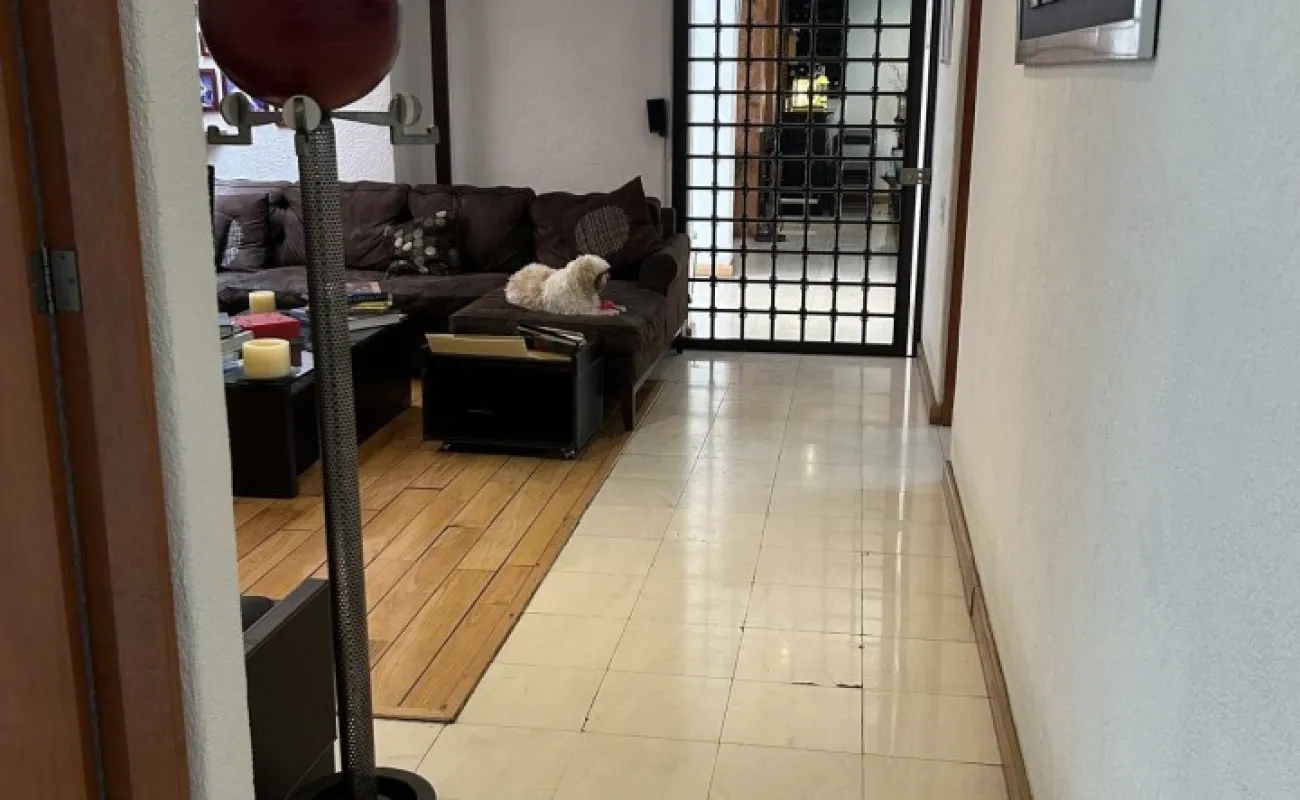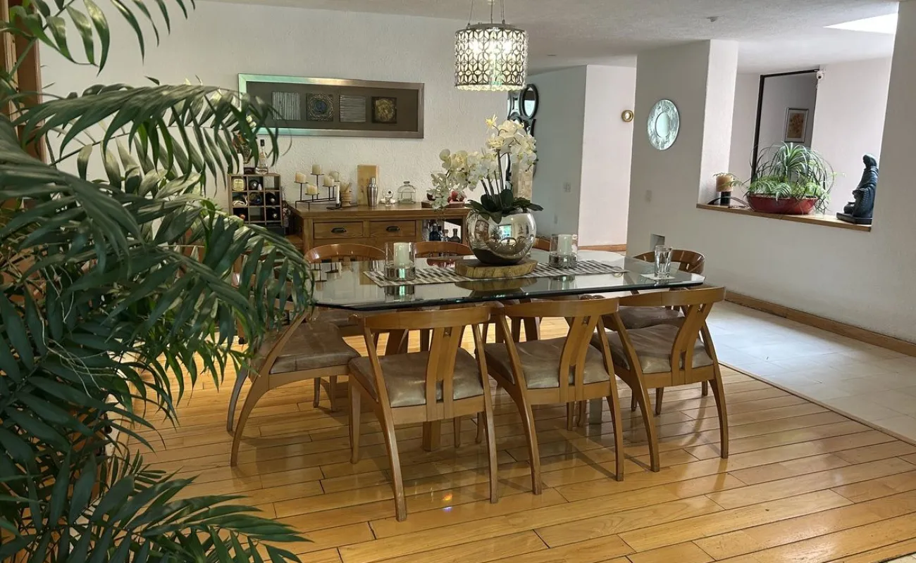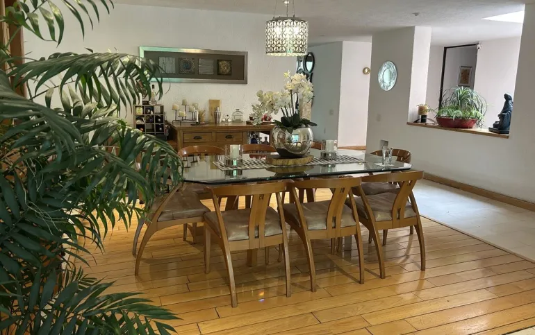 Subiendo un solo piso, se encuentra la casa una preciosa casa también de muy buen tamaño y muy iluminada, tiene sala y comedor, con piso de encino americano cocina de muy buen tamaño, con desayunador que da a un jardín hermoso